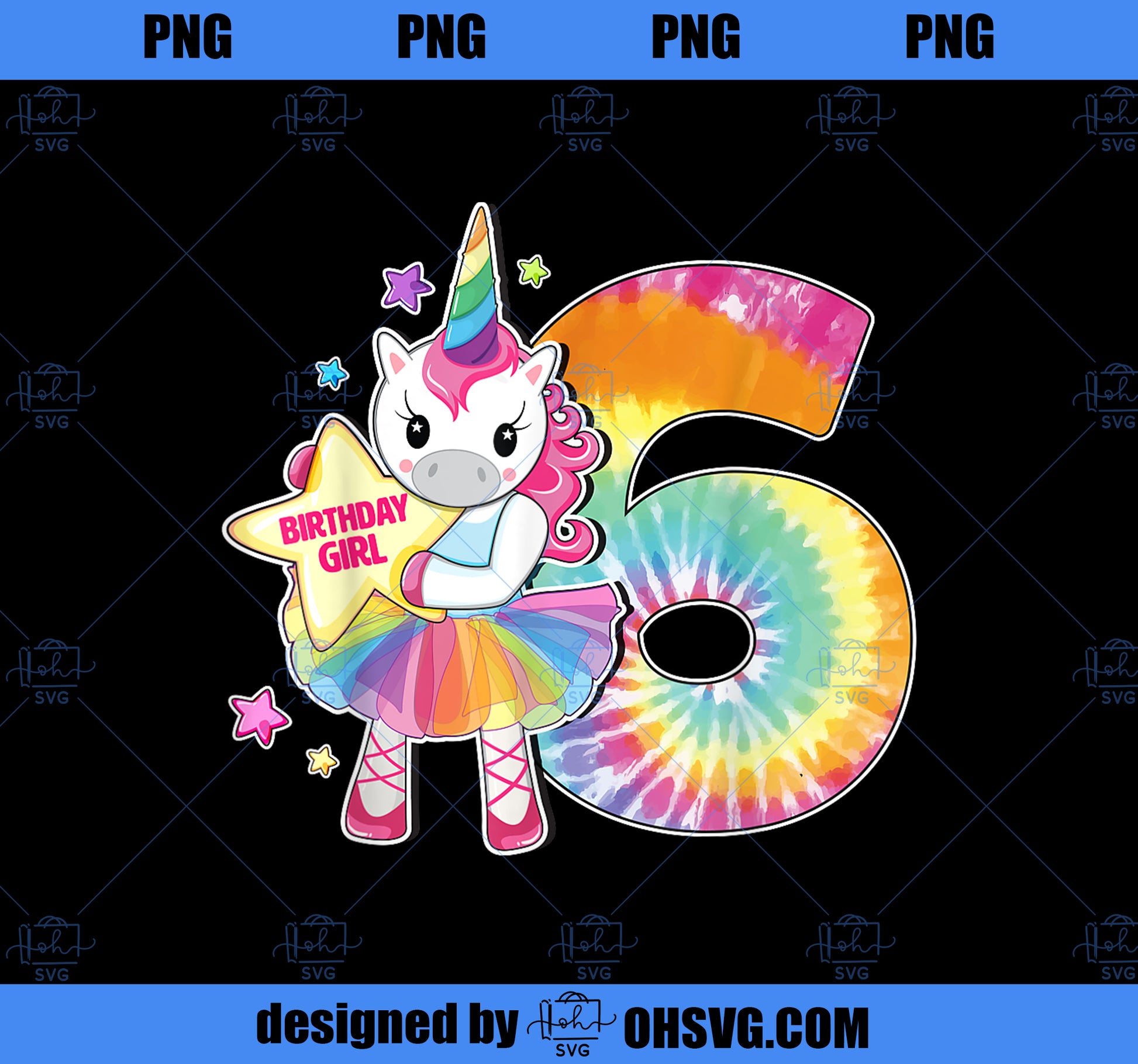 6th Birthday Unicorn Shirt Gift for Girls Age 6 Tie Dye Tee PNG, Magic Unicorn PNG, Unicorn PNG