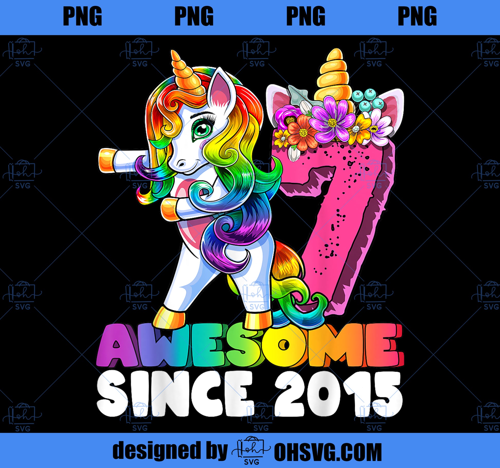 7 Awesome Since 2015 Flossing Unicorn 7th Birthday Girls PNG, Magic Unicorn PNG, Unicorn PNG