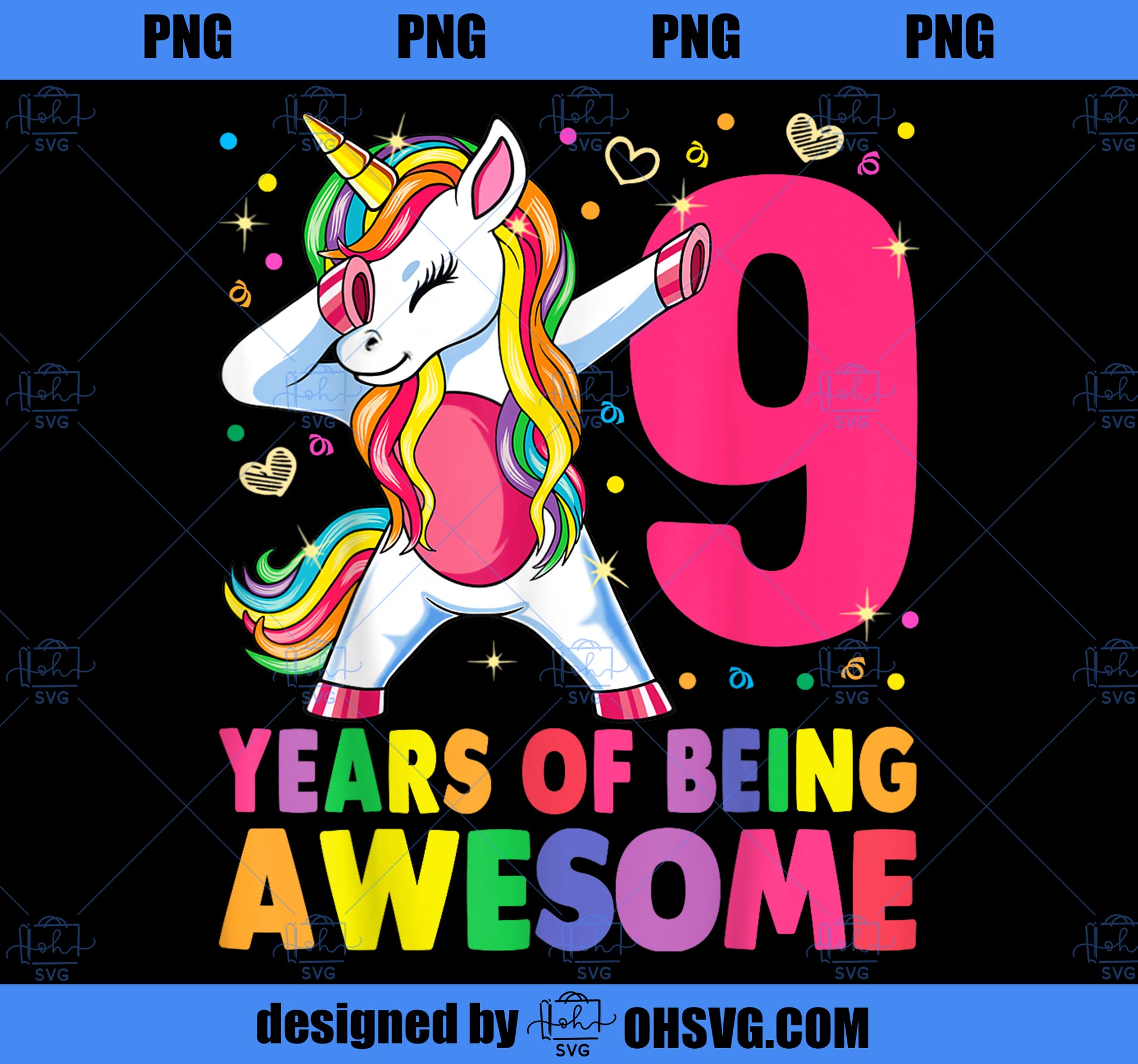 9 Years Old Unicorn Dabbing 9th Birthday Girl Unicorn Party PNG, Magic Unicorn PNG, Unicorn PNG