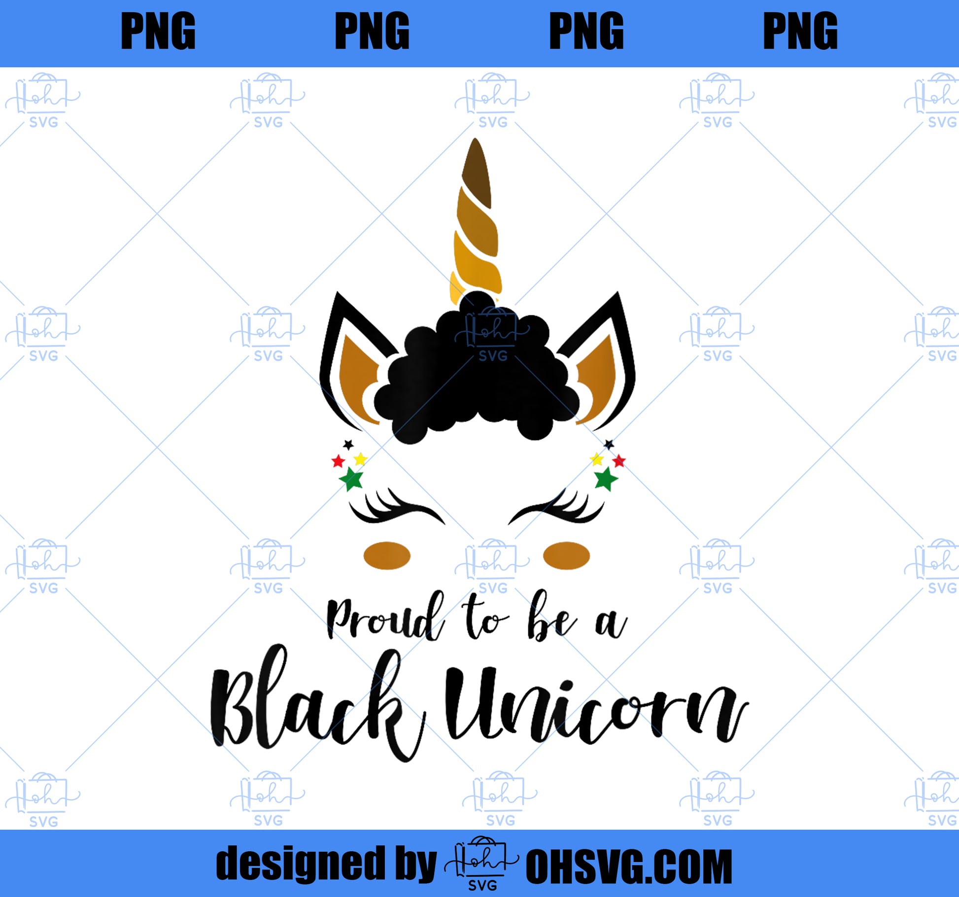 Black Unicorn AfricanAmerican Afro Girls tee PNG, Magic Unicorn PNG, Unicorn PNG
