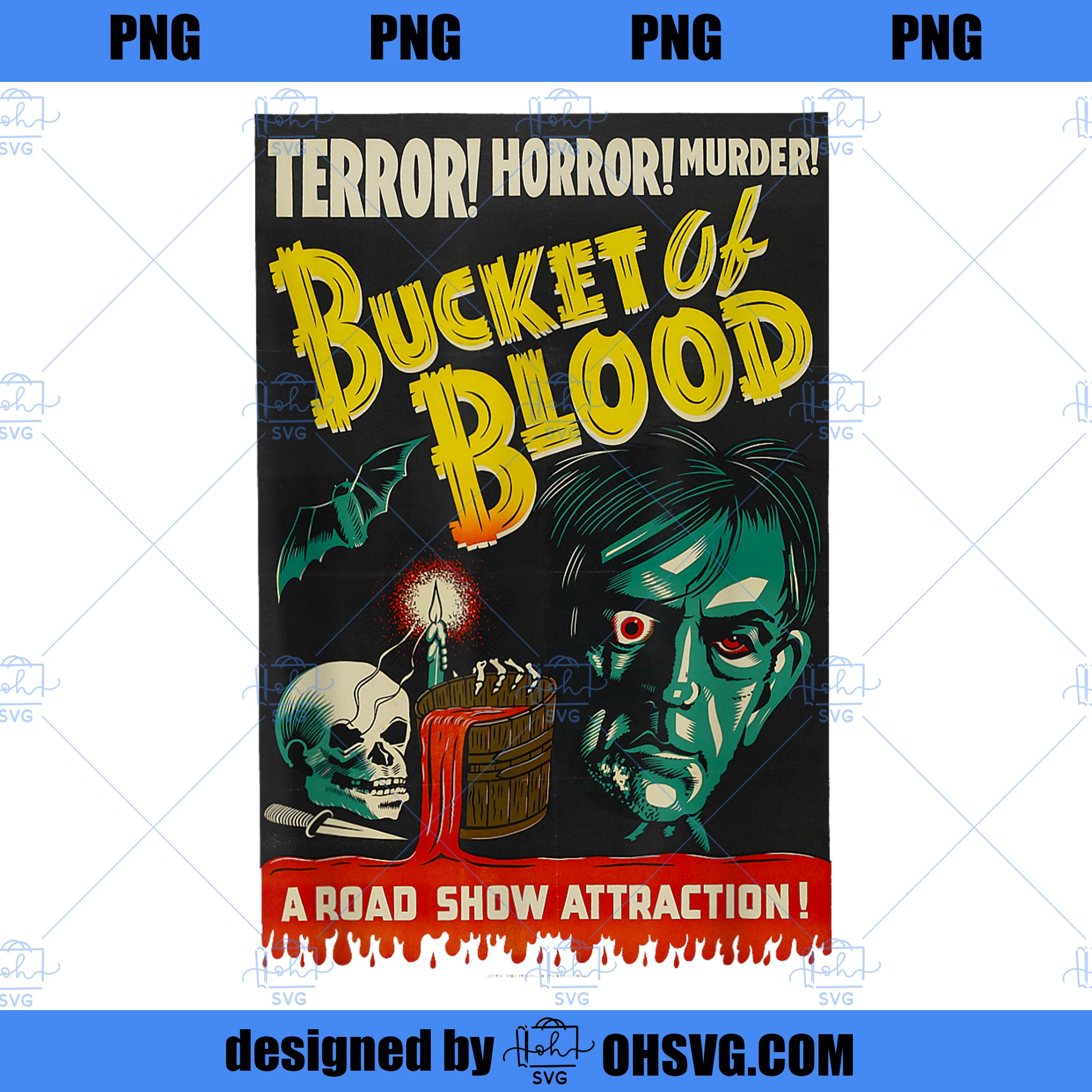 Blood Bucket Classic Halloween Monster Poster Horror Movie PNG, Movies PNG, Blood Bucket PNG