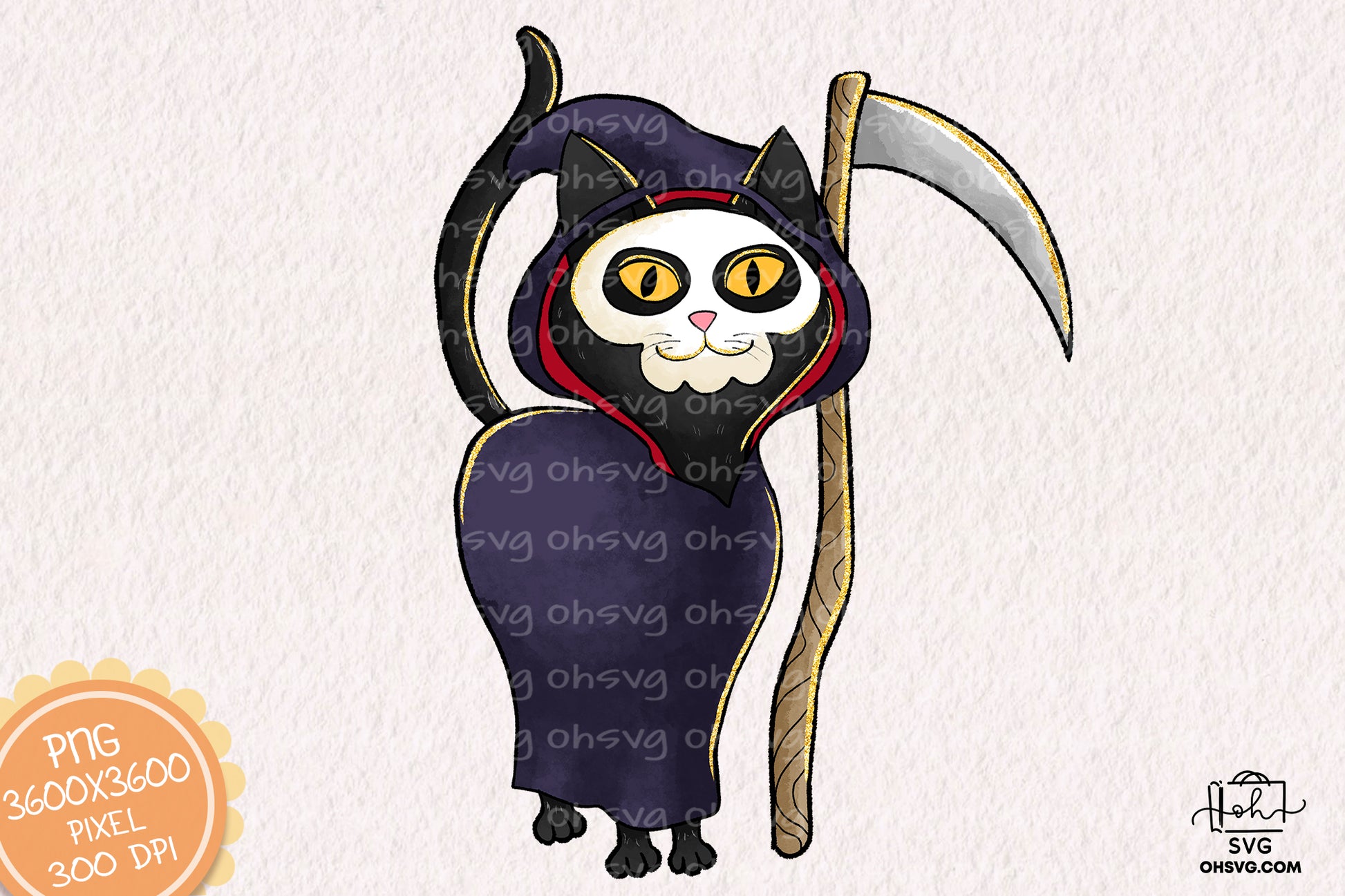 Cat Grim Reaper Halloween Sublimation PNG, Cat Halloweentown PNG, Halloween T-shirt PNG