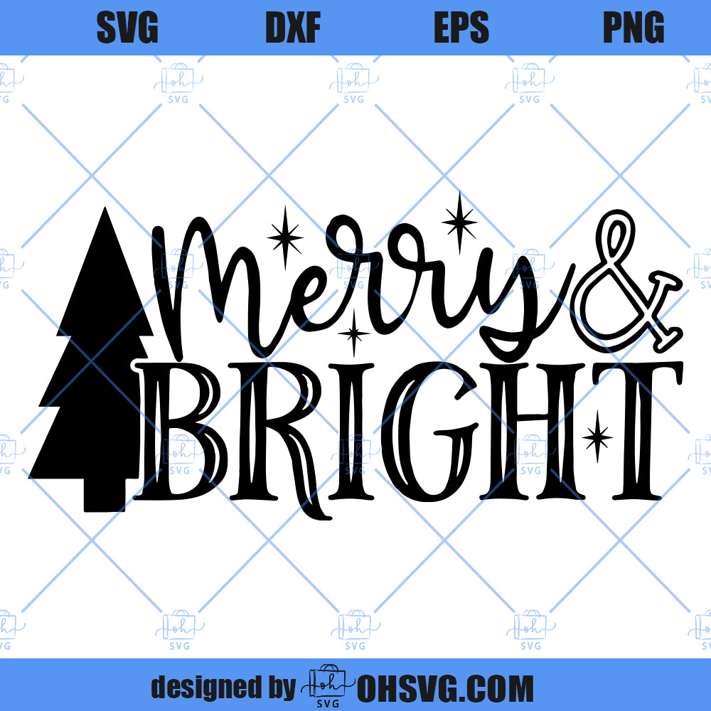 Christmas SVG Cut File, Merry & Bright SVG, Christmas Tree SVG