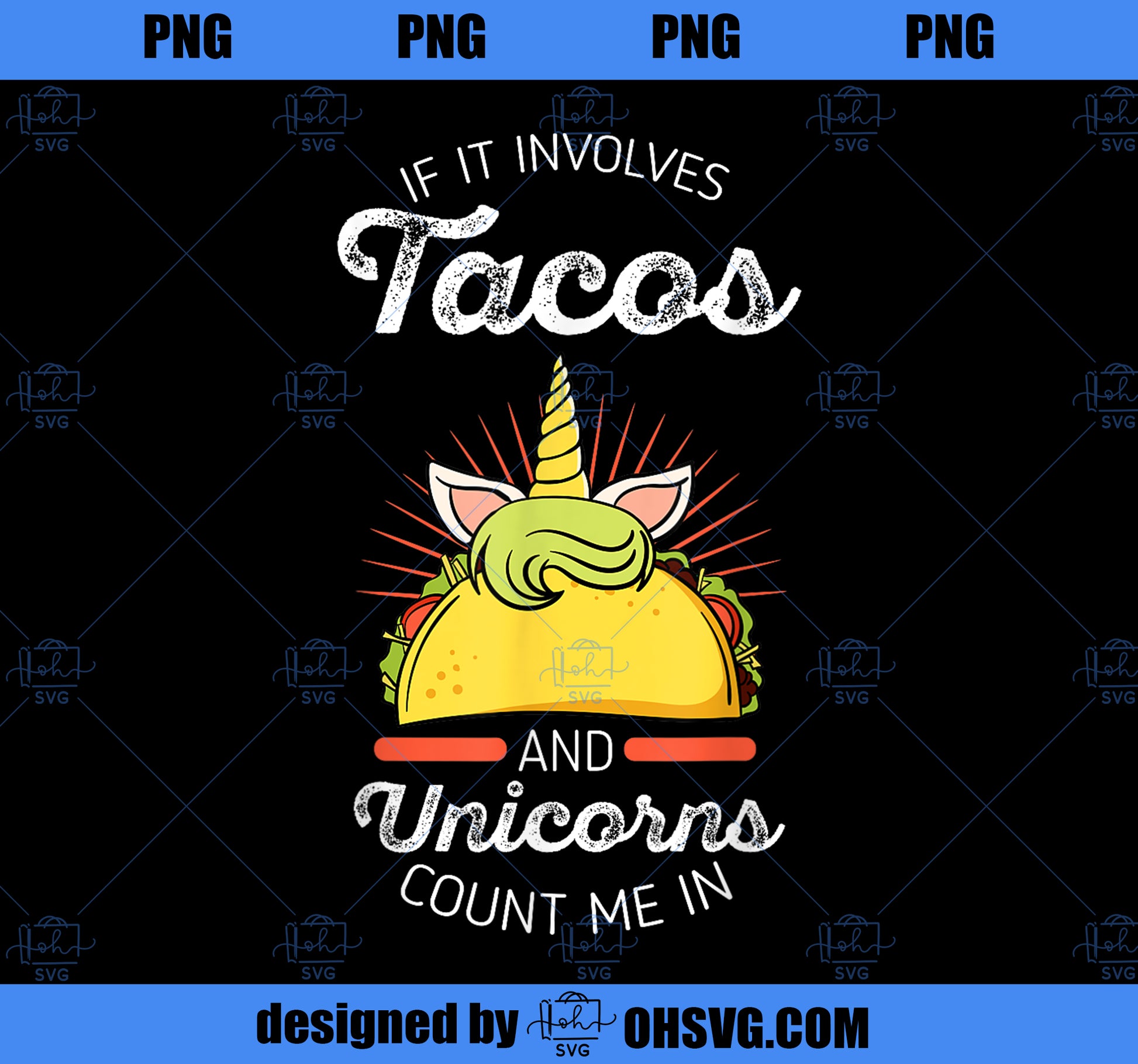Count Me In Unicorn Tacos Mexican Dish Mystical Horse White PNG, Magic Unicorn PNG, Unicorn PNG