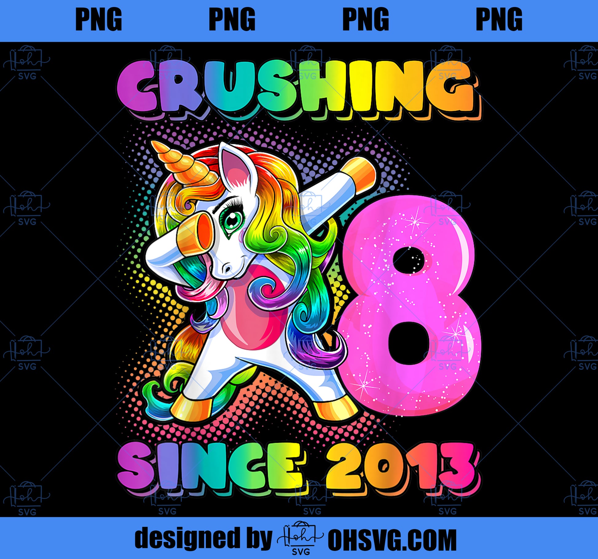 Crushing 8 Since 2013 Dabbing Unicorn 8th Birthday Gift Girl PNG, Magic Unicorn PNG, Unicorn PNG