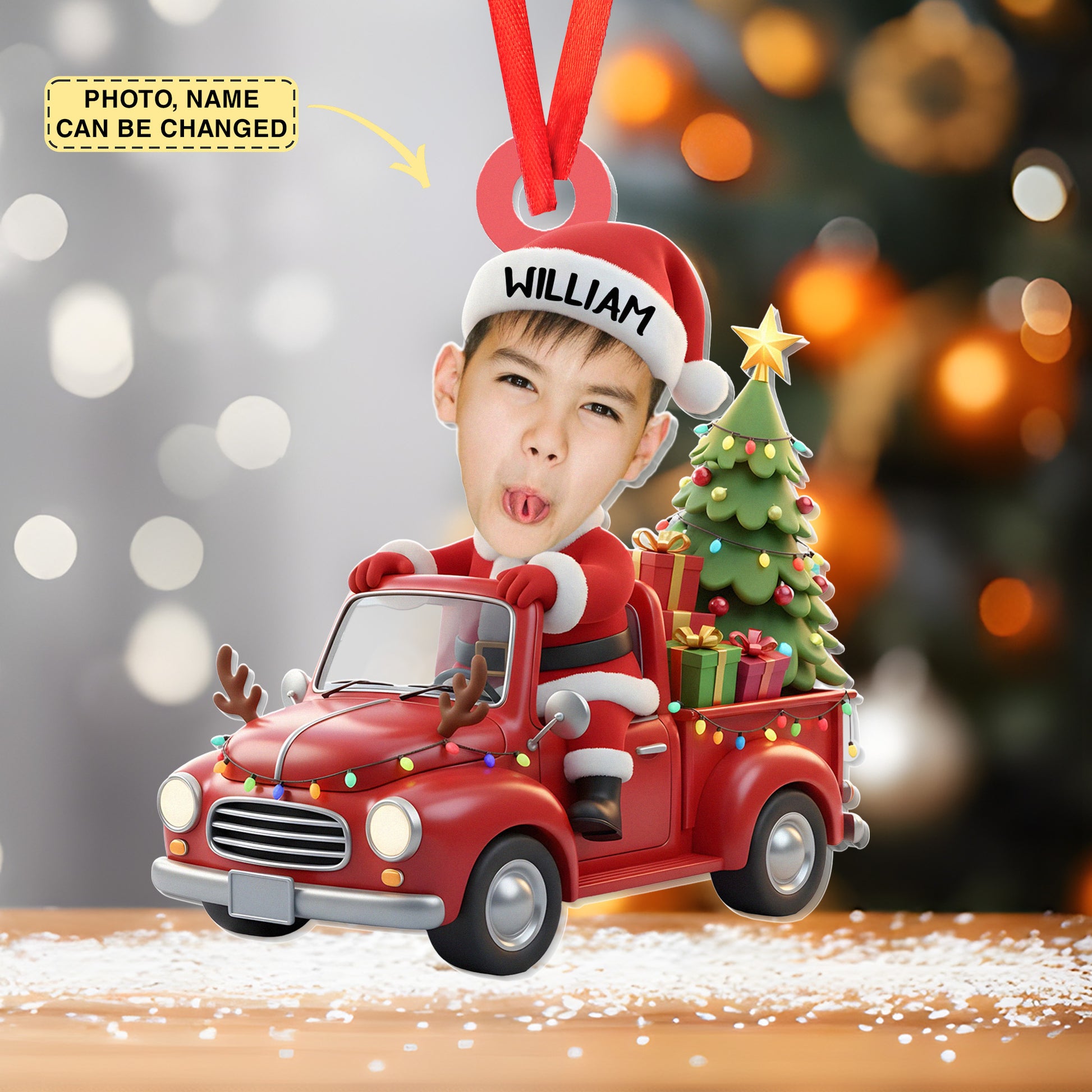 Custom Photo Acrylic Ornament - Personalized Christmas Birthday Gifts For Kids - Driving Into Holiday Magic