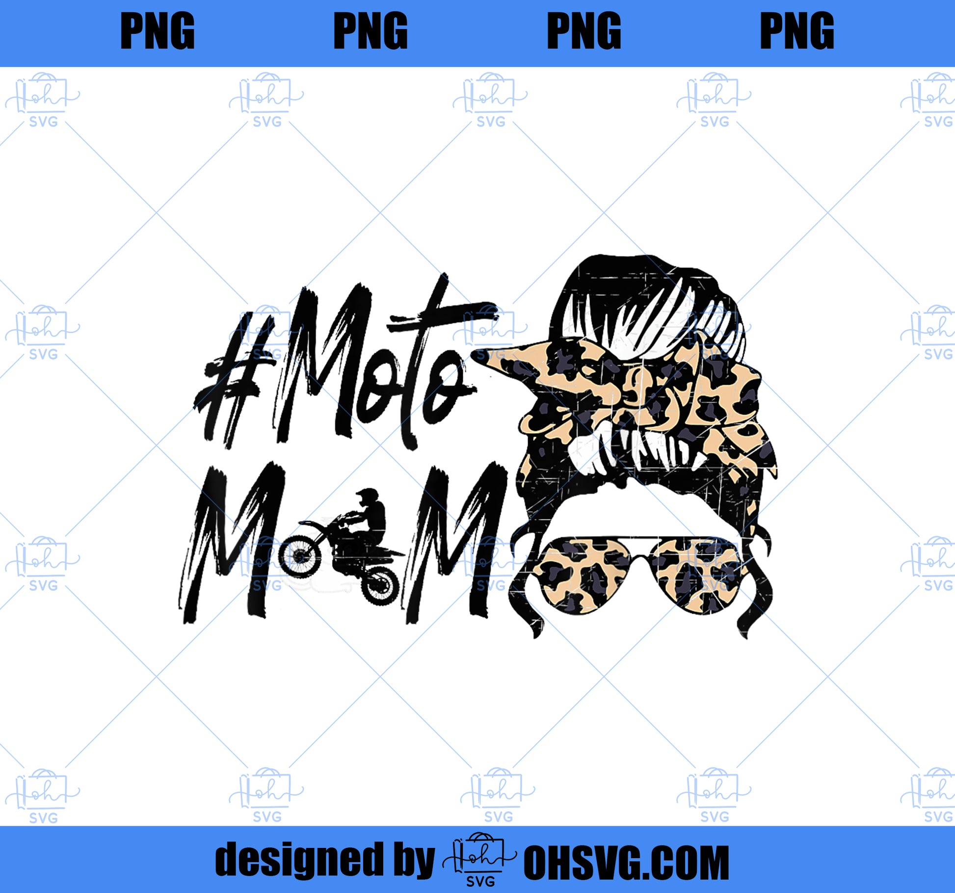 Cute Mothers Day Moto Mom Motocross Leopard Print Messy Bun PNG, Mom PNG, Mothers Day PNG
