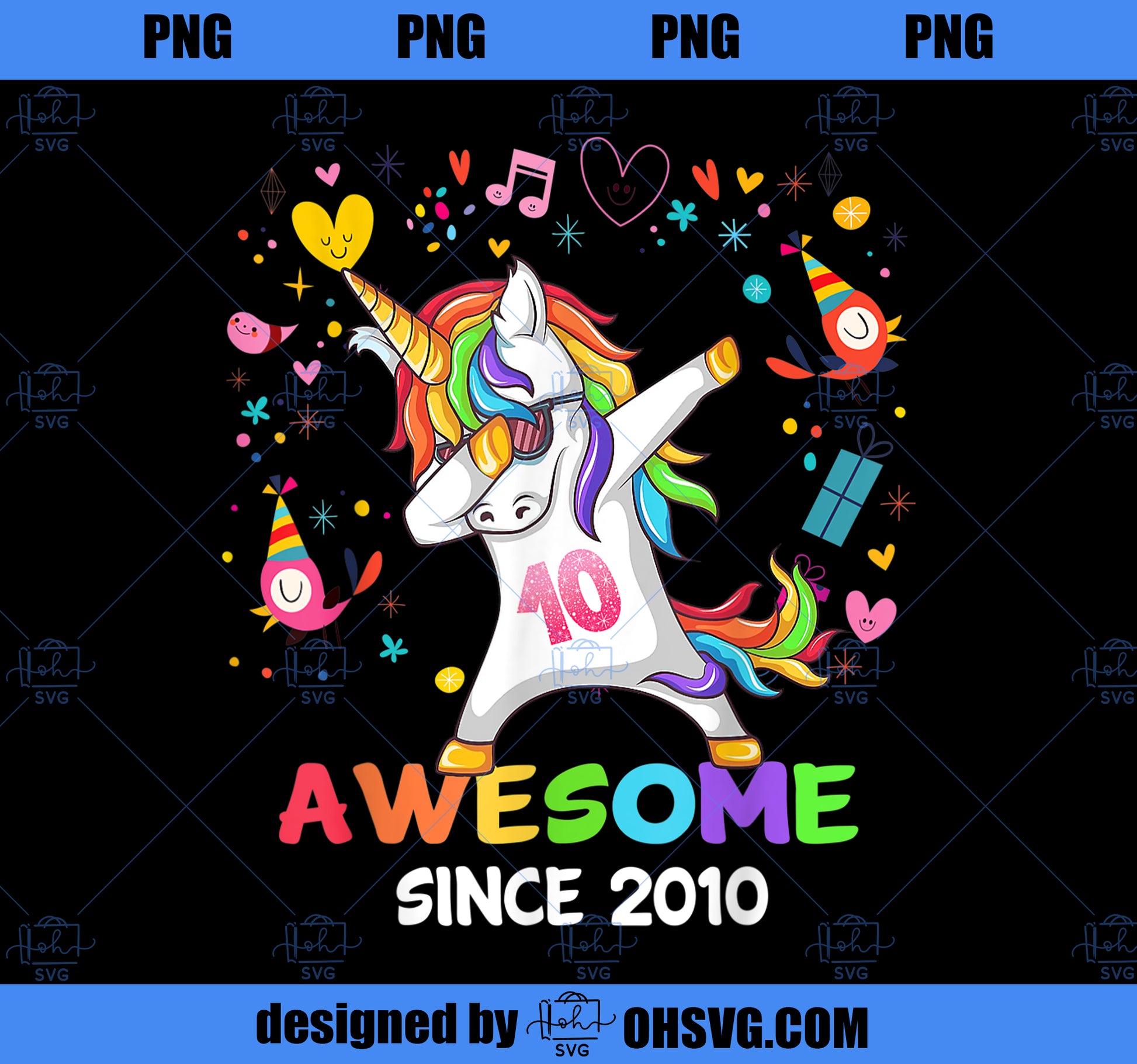 Dabbing Unicorn Awesome Since 2010 10th Birthday PNG, Magic Unicorn PNG, Unicorn PNG