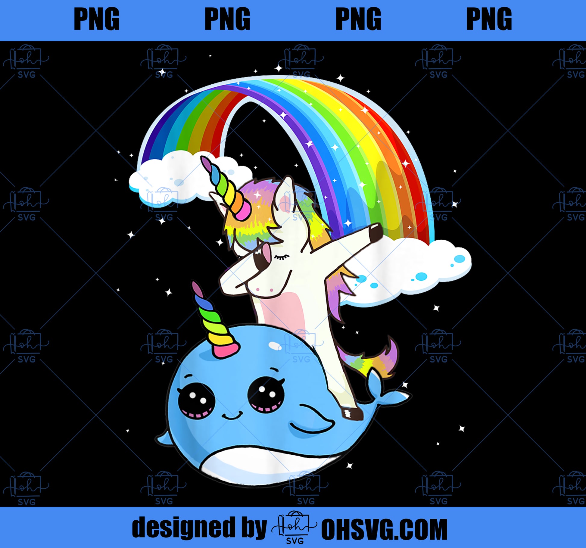 Dabbing Unicorn With Narwhal and Rainbow Cute PNG, Magic Unicorn PNG, Unicorn PNG