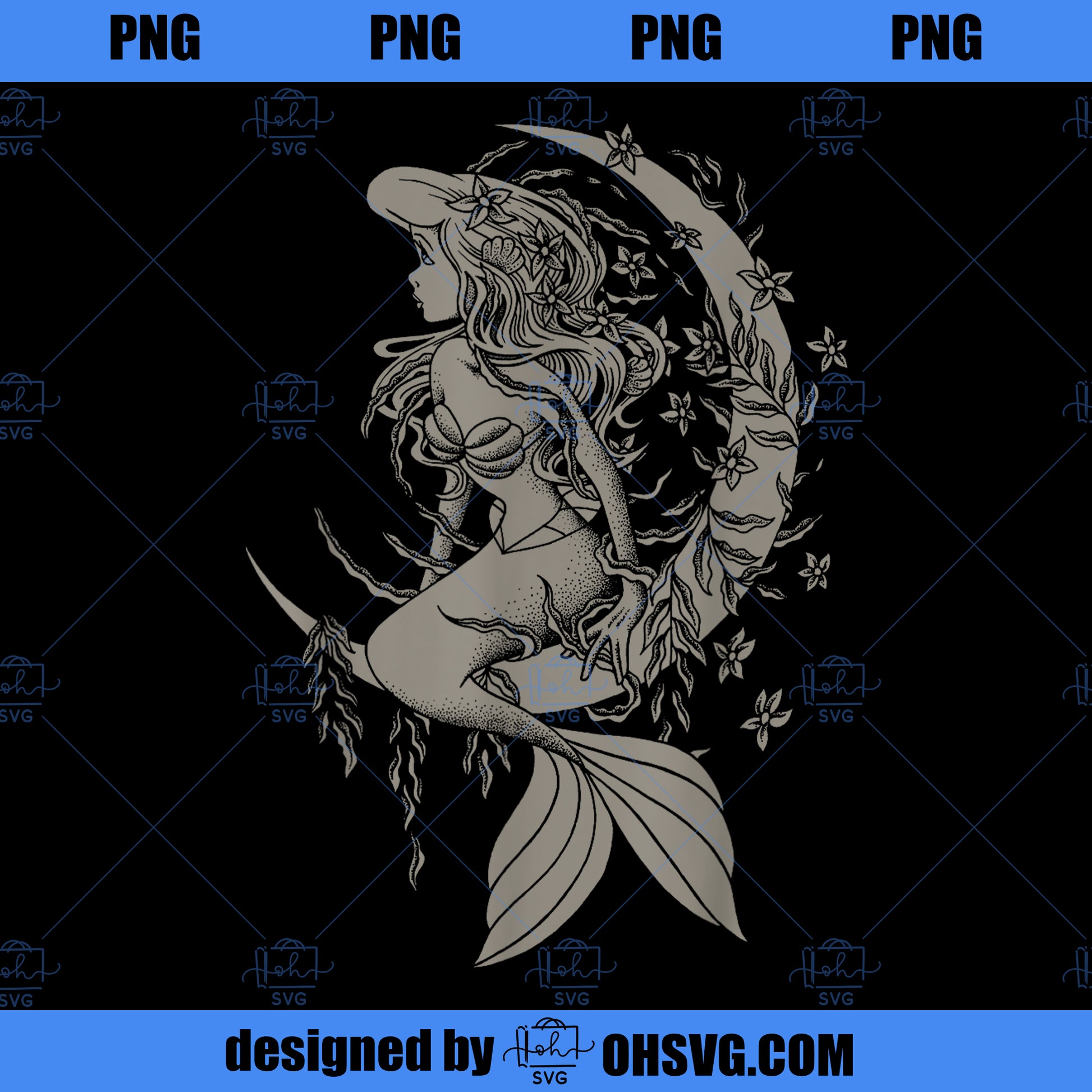 Disney Little Mermaid Ariel Tattoo Style Portrait PNG, Disney PNG, Little Mermaid PNG