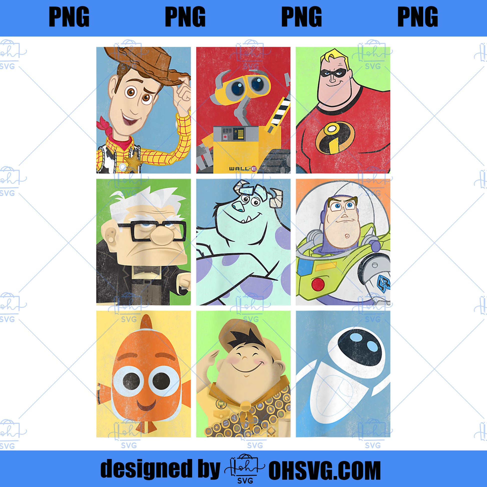 Disney Pixar Collection Iconic Characters Box Up Vintage PNG, Disney PNG, Disney Pixar PNG