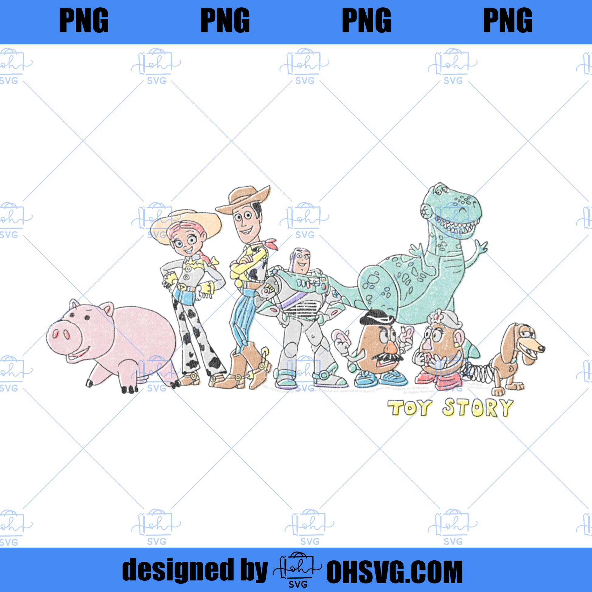 Disney Pixar Toy Story Group Shot Line Up Distressed Poster PNG, Disney PNG, Disney Pixar PNG