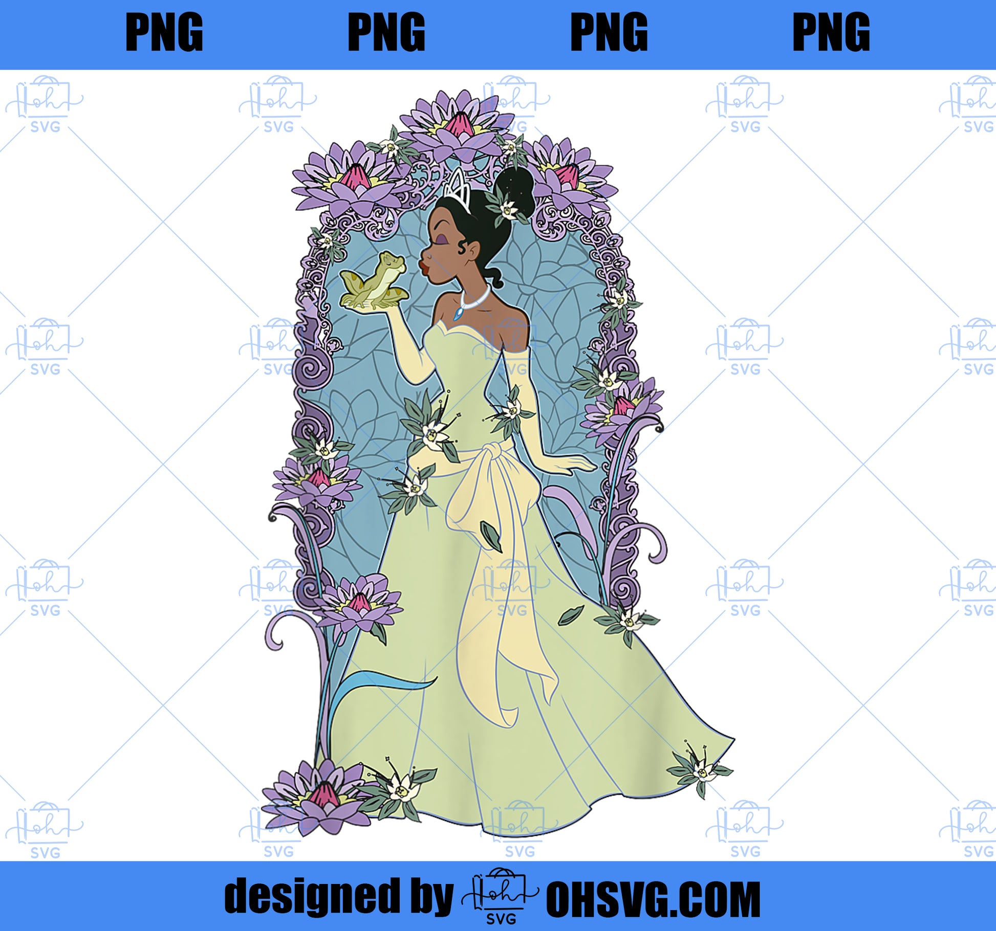 Disney Princess And The Frog Tiana Floral Kiss T-Shirt PNG, Disney PNG, Princess PNG