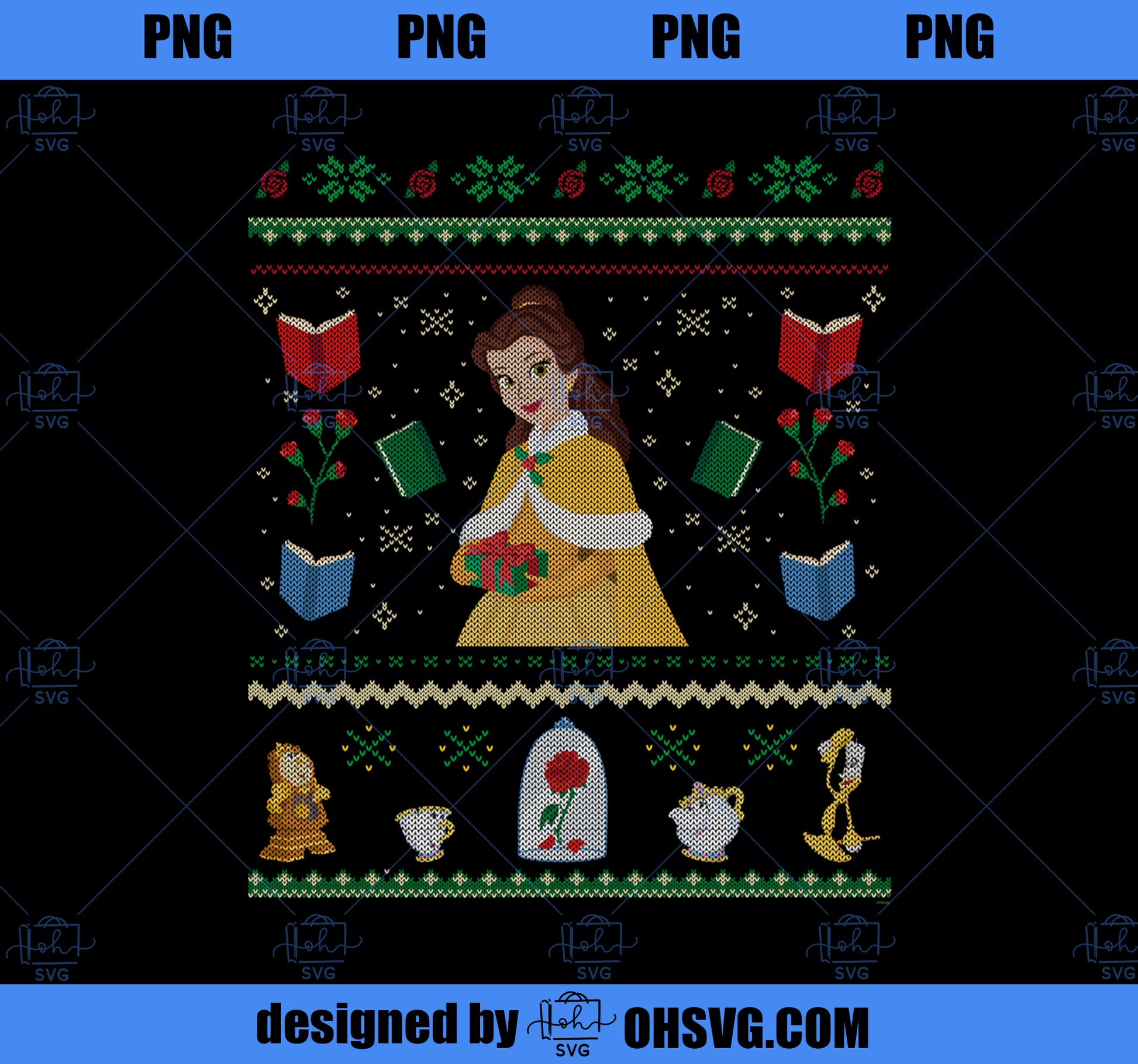 Disney Princess Beauty and the Beast Belle Christmas Sweater Long Sleeve PNG, Disney PNG, Princess PNG