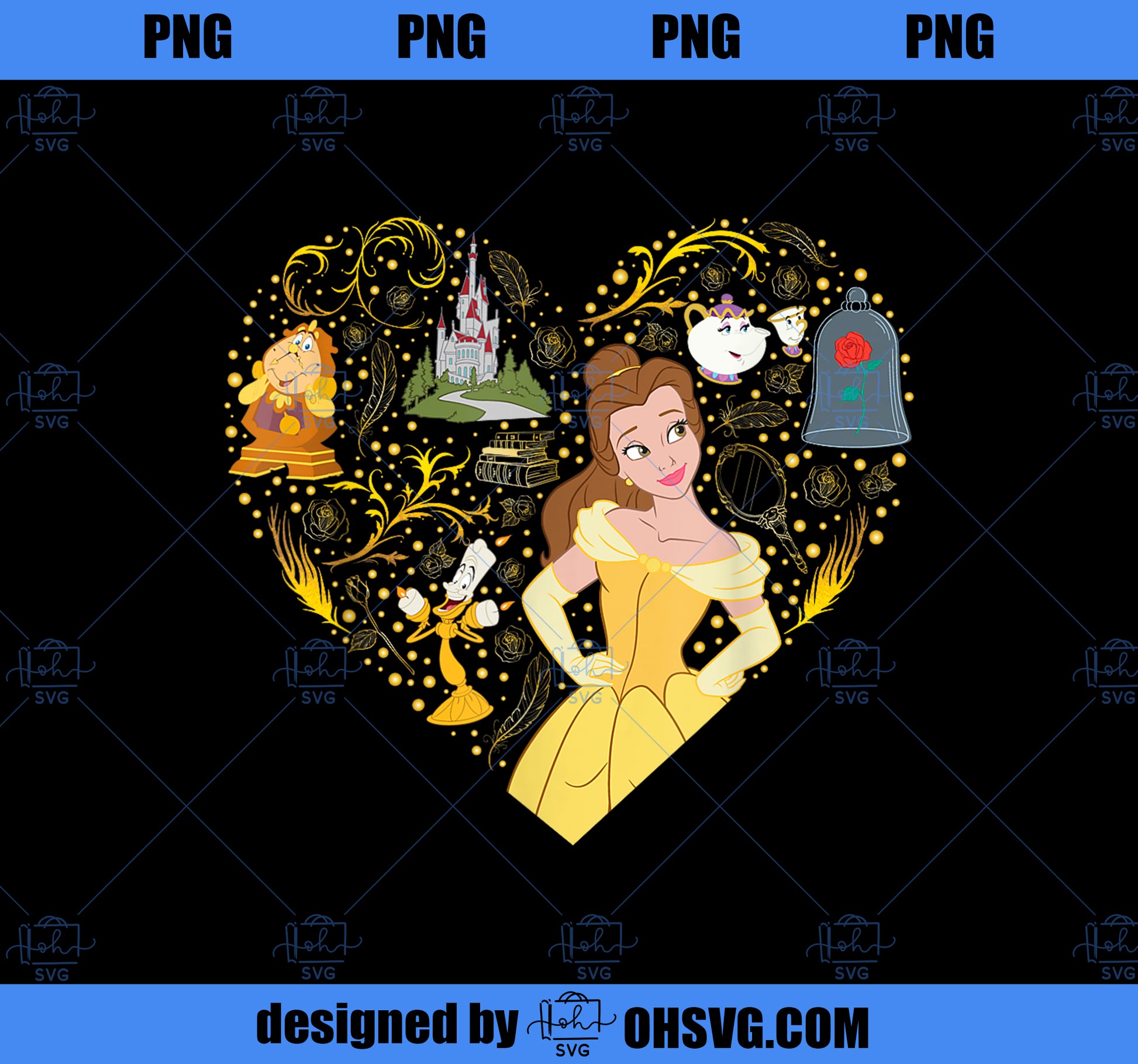 Disney Princess Belle Collage Heart PNG, Disney PNG, Princess PNG