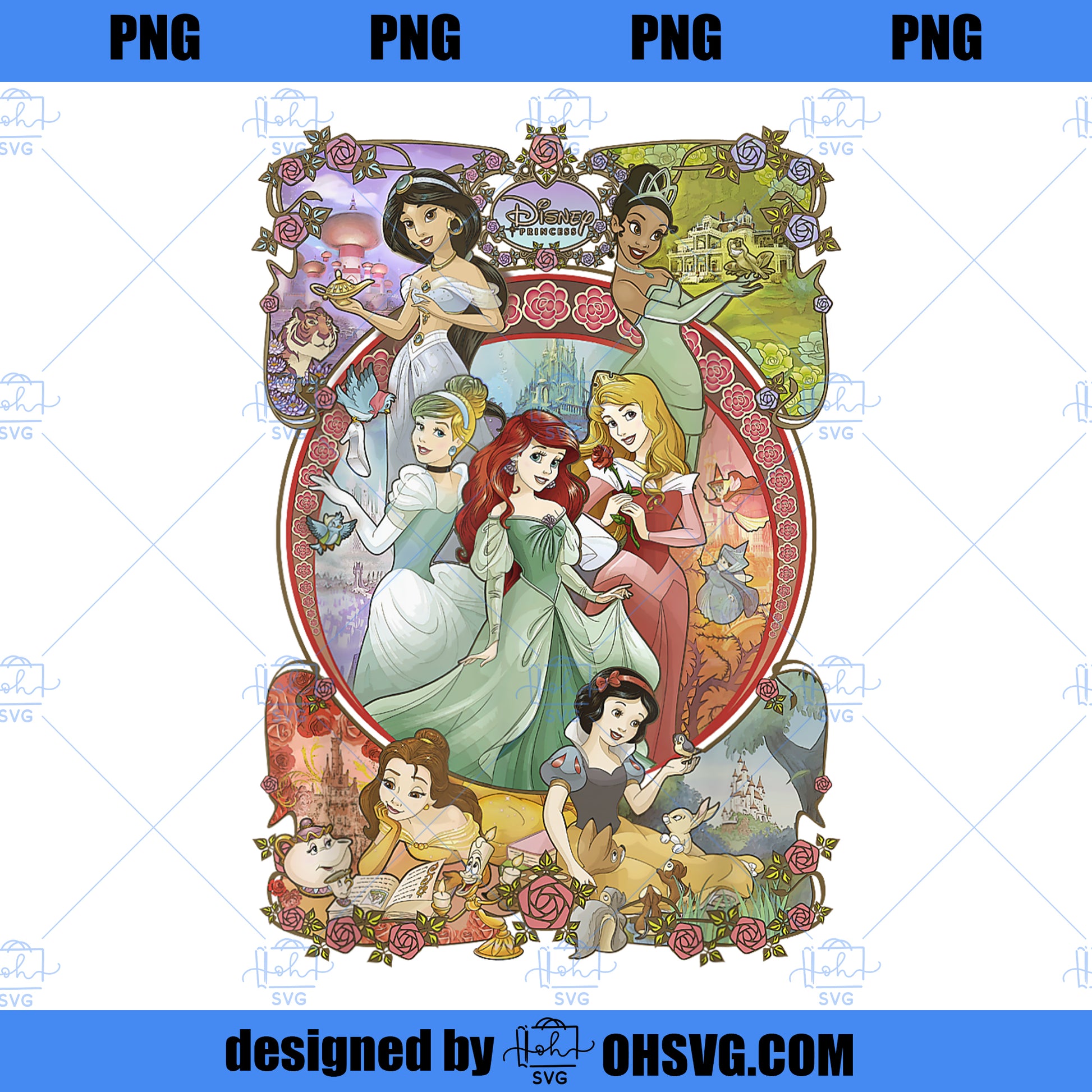 Disney Princess Classic Cartoon Group Collage PNG, Disney PNG, Disney Princess PNG