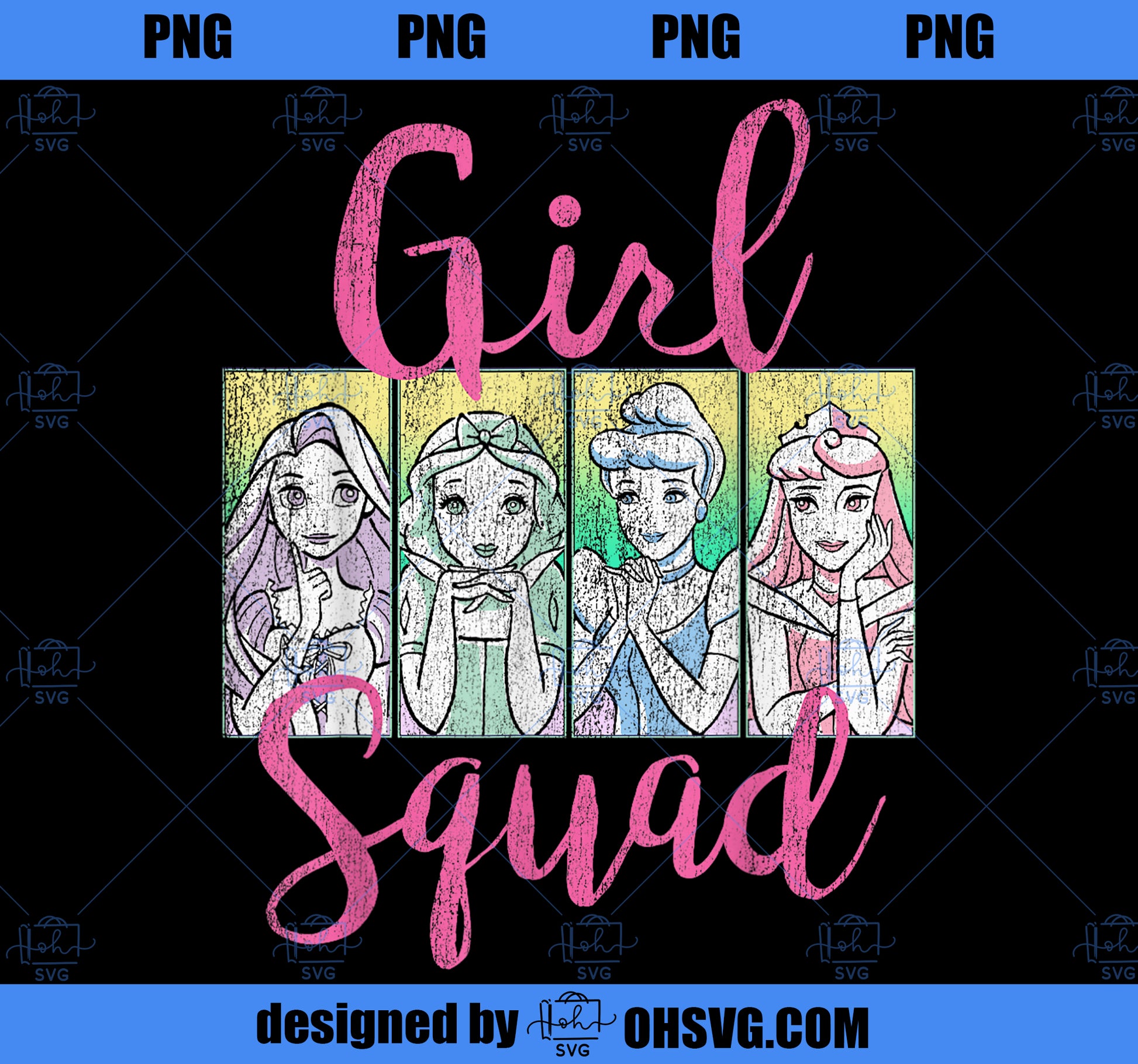 Disney Princess Girls Squad Group Shot Retro Graphic T-Shirt PNG, Disney PNG, Princess PNG