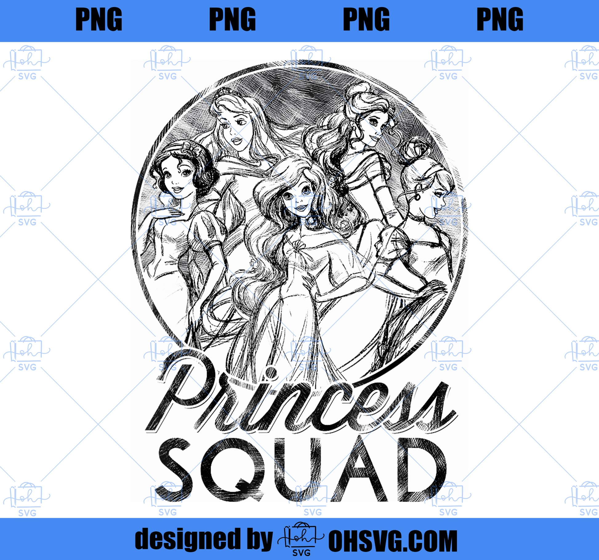 Disney Princess Group Sketch Portrait Princess Squad PNG, Disney PNG, Princess PNG