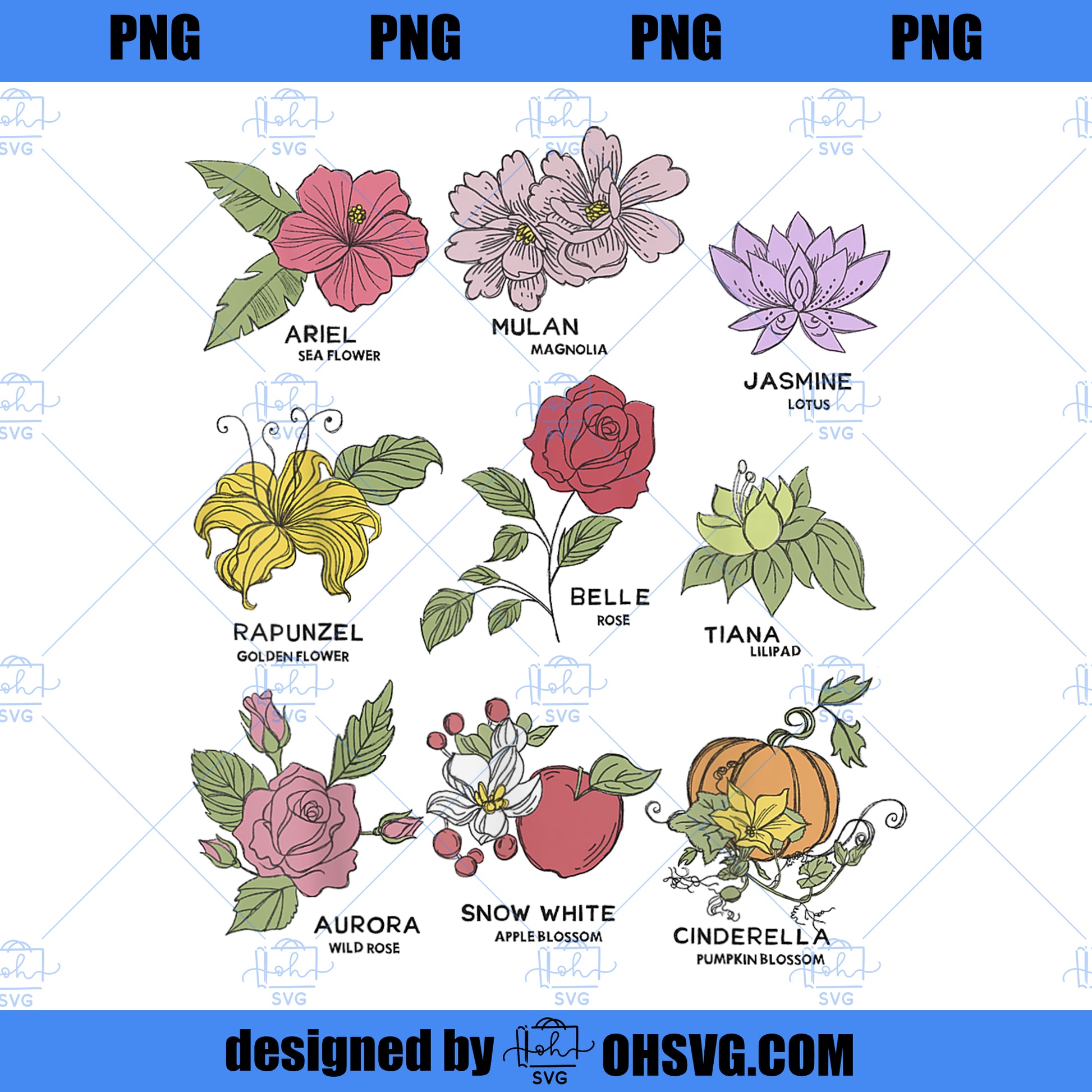 Disney Princesses Types Of Flowers Textbook Poster PNG, Disney PNG, Disney Princess PNG