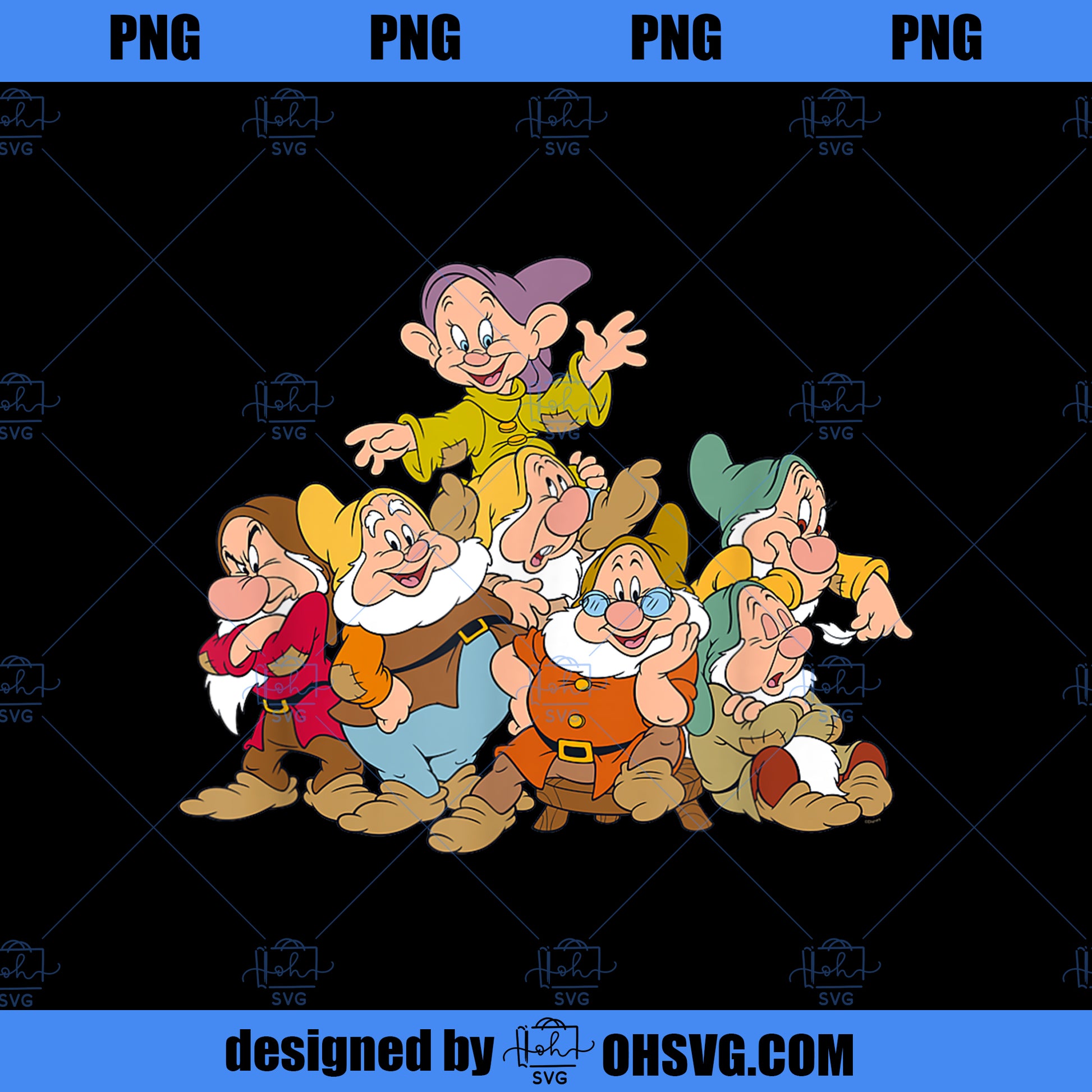 Disney Snow White the Seven Dwarfs Group Fun PNG, Disney PNG, Snow White PNG