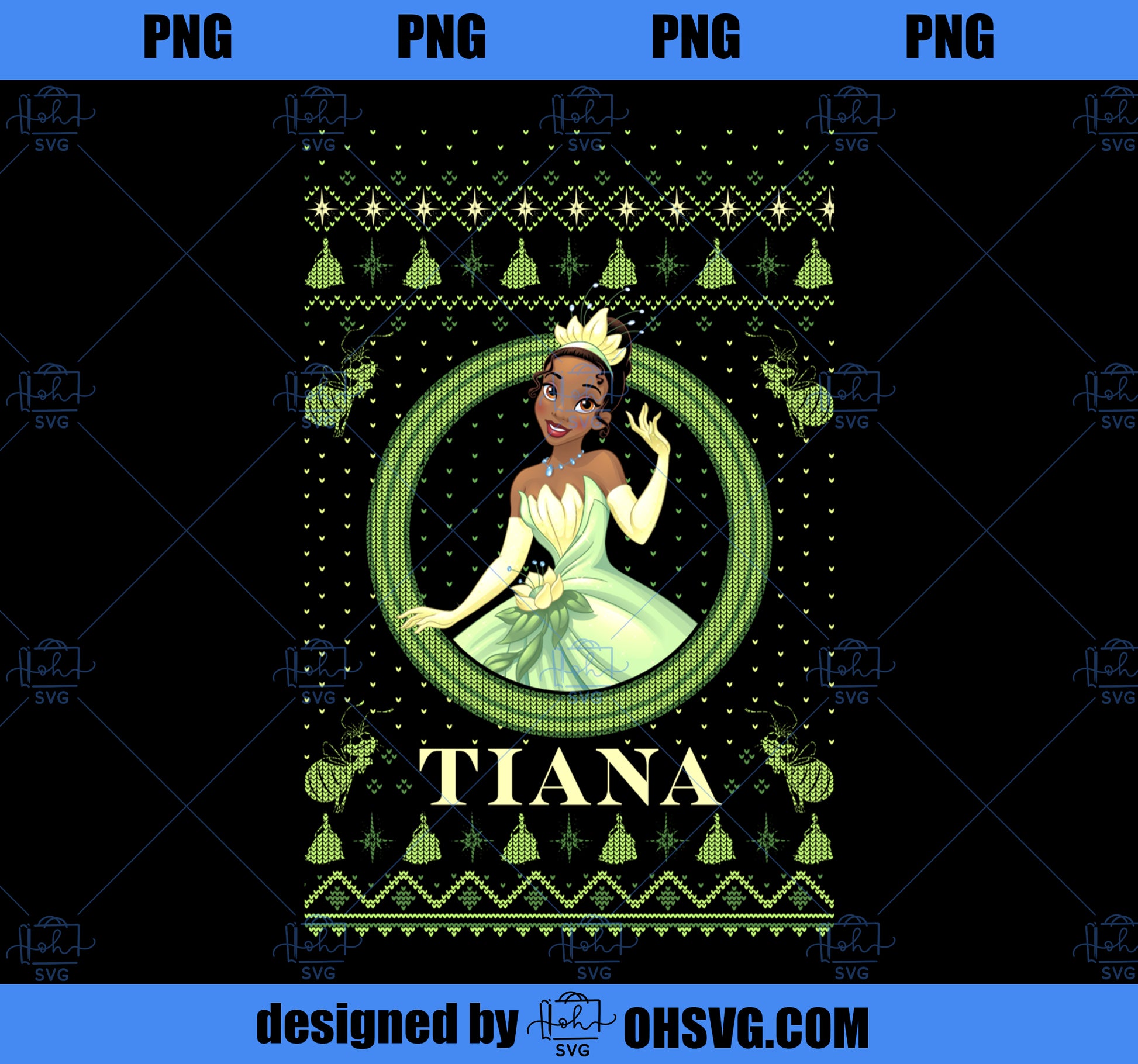 Disney The Princess and the Frog Tiana Christmas Sweater Long Sleeve PNG, Disney PNG, Princess PNG