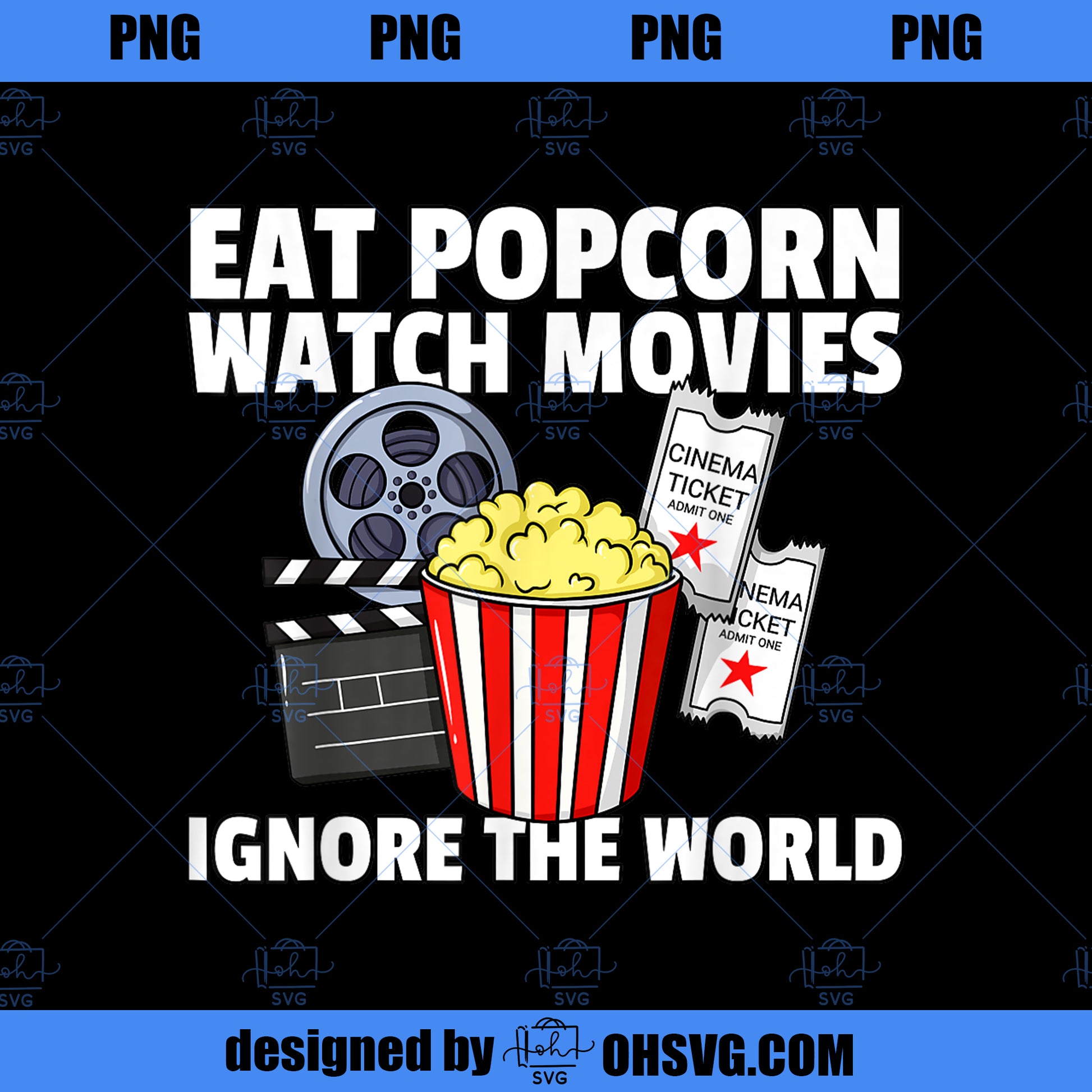 Eat Popcorn Watch Movies Ignore the World Cinema Night PNG Download, Movies PNG, Eat Popcorn PNG