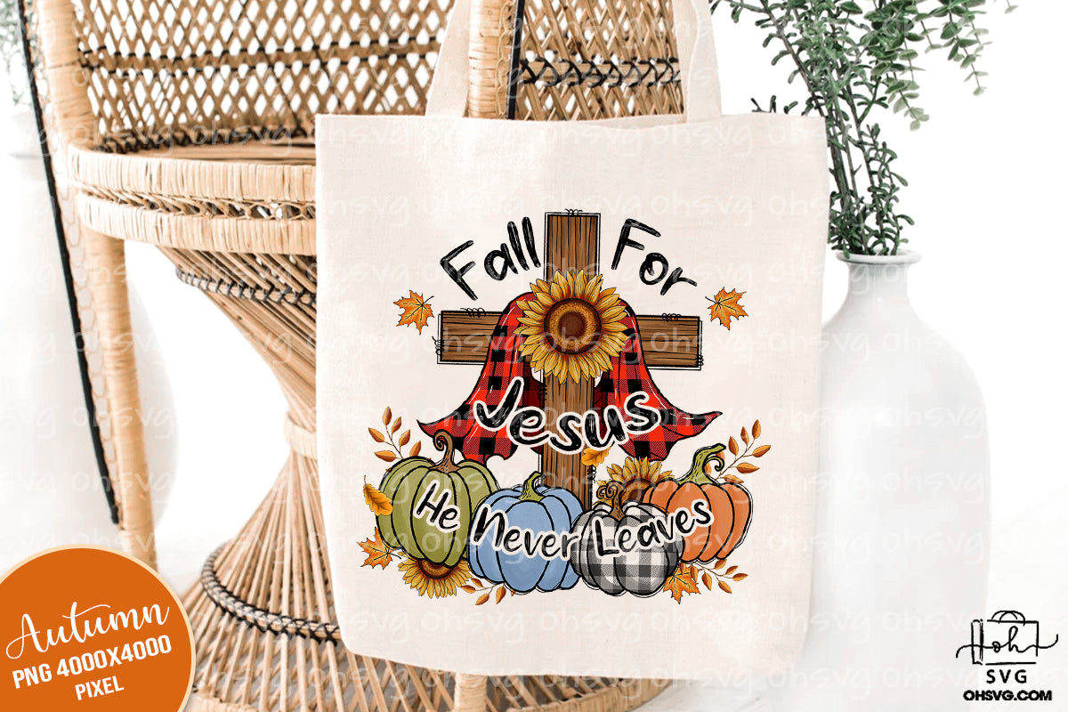 Fall For Jesus He Never Leaves PNG, Fall Cross PNG, Pumpkin Cross Sunflower PNG