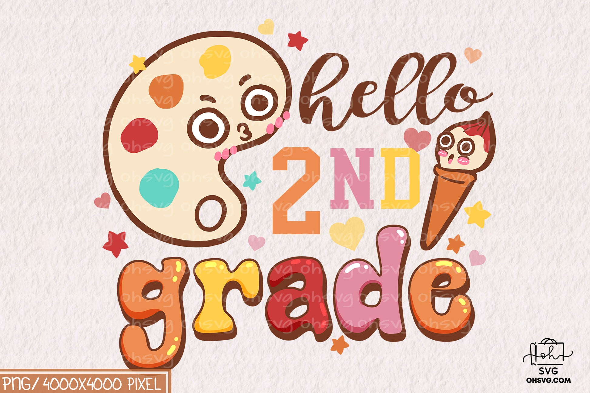 Hello 2nd Grade Sublimation PNG, Back To School PNG, School PNG