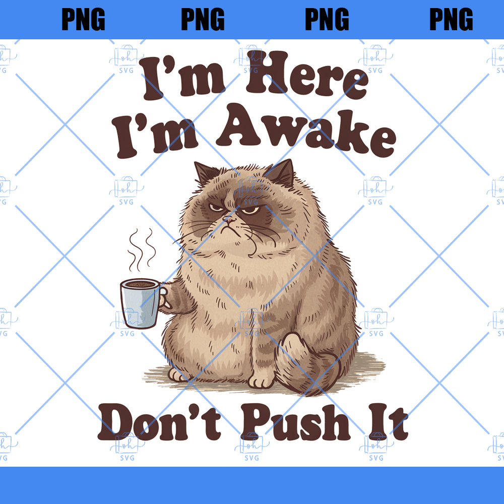 I'm Here I'm Awake Don't Push It, Retro Trendy Sarcastic Office humor Funny Sleepy Grumpy Cat Meme SVG PNG Shirt Sticker Sublimation Designs