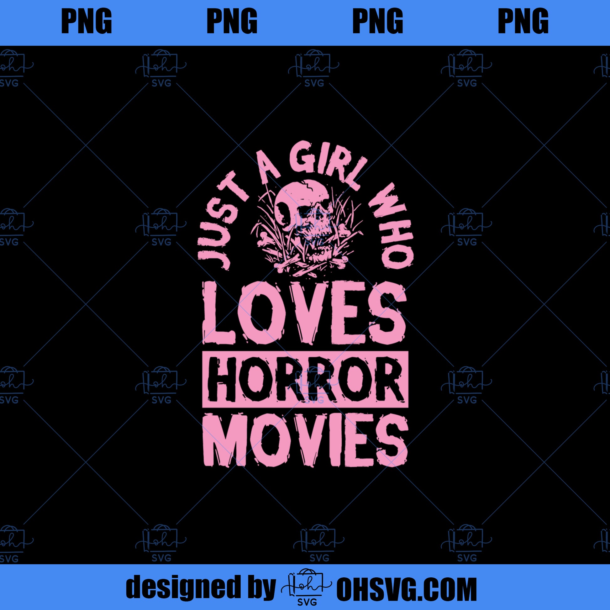 Just A Girl Who Loves Horror Movies Funny Halloween Stuff PNG, Movies PNG, Horror Movies PNG