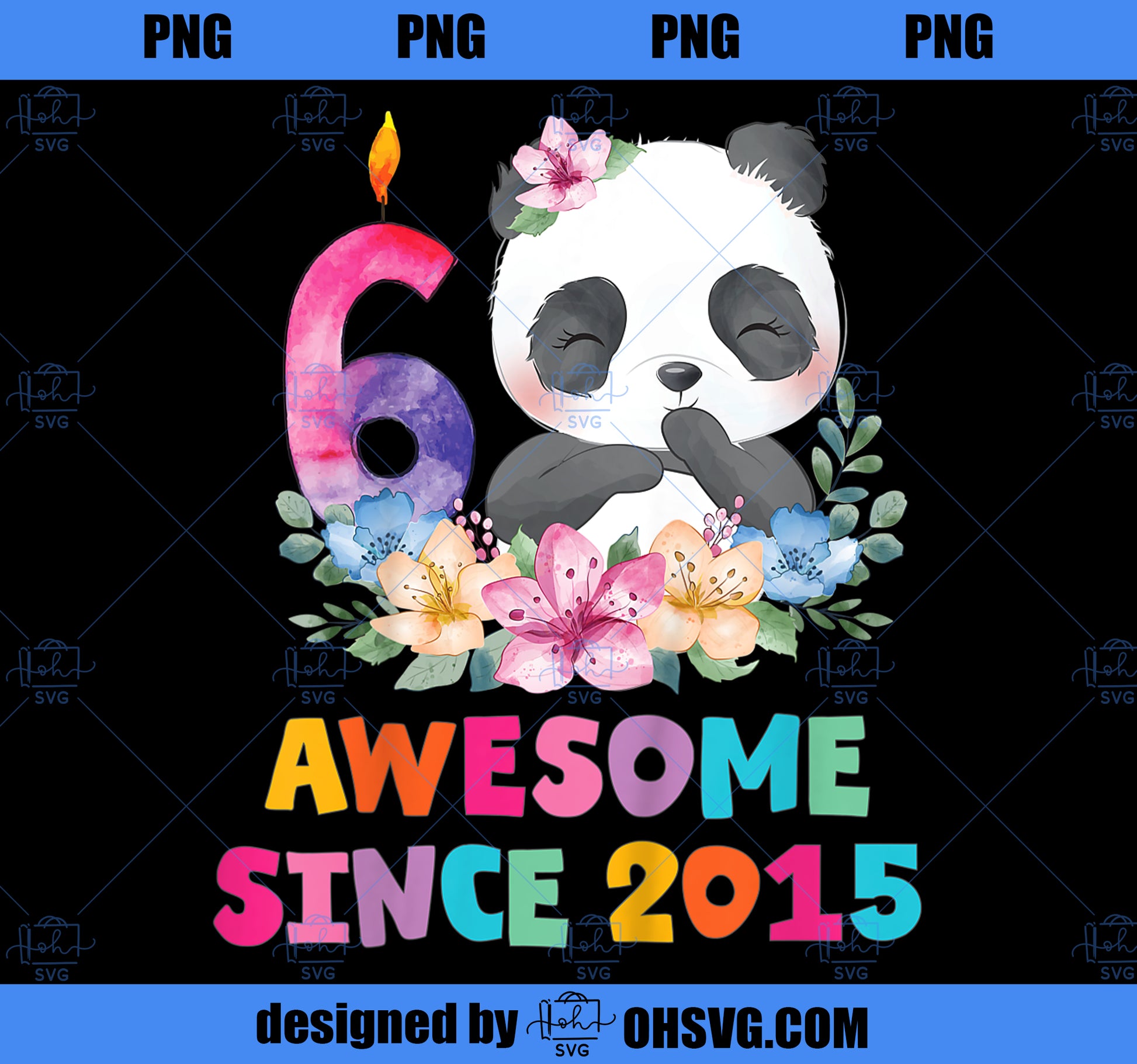 Kids 6Years Old 6th Birthday Panda Unicorn Girl Party Gift PNG, Magic Unicorn PNG, Unicorn PNG