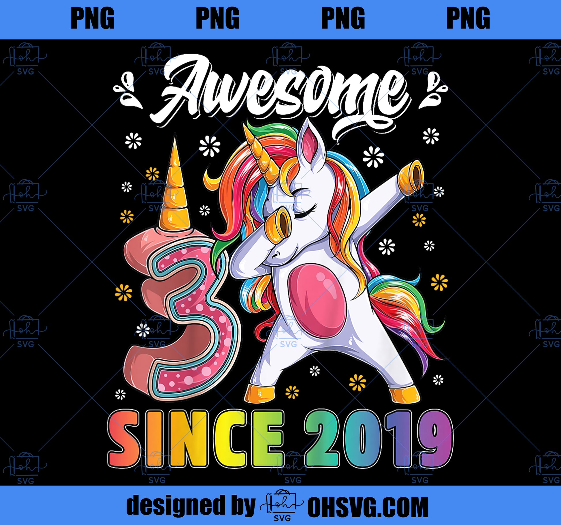 Kids awesome dabbing unicorn birthday 3 year old Girl 3rd Bday PNG, Magic Unicorn PNG, Unicorn PNG