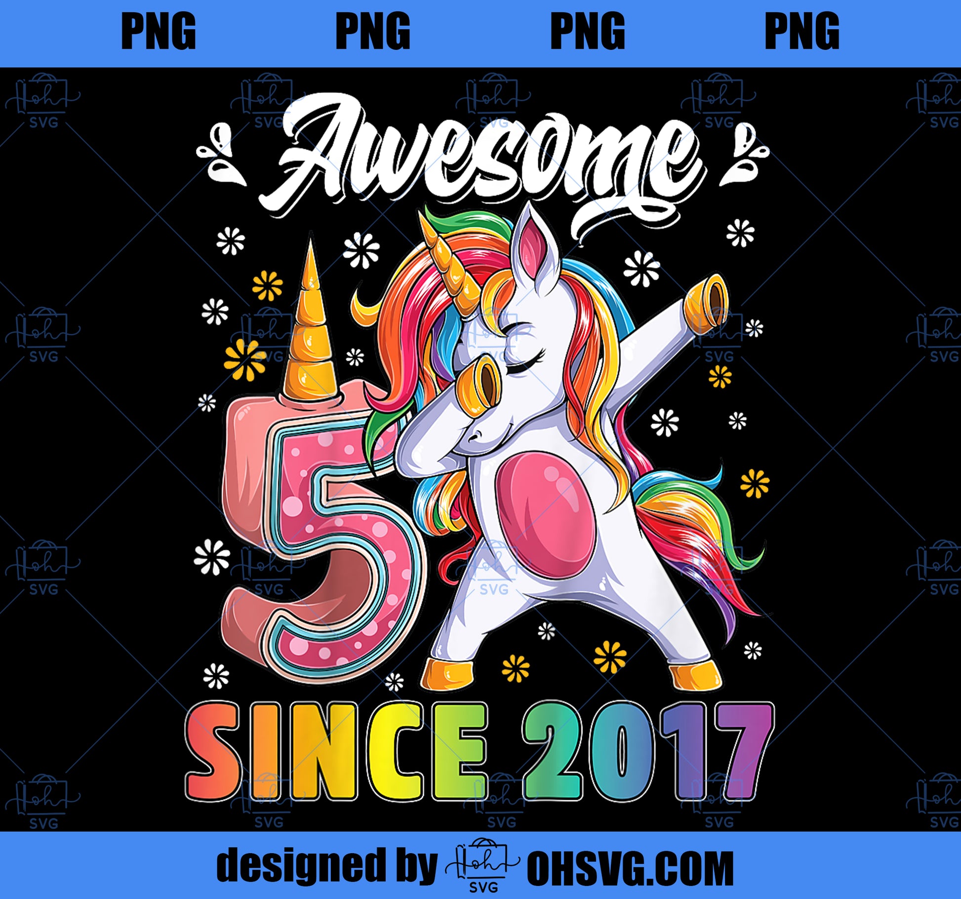 Kids awesome dabbing unicorn birthday 5 year old Girl 5th Bday PNG, Magic Unicorn PNG, Unicorn PNG
