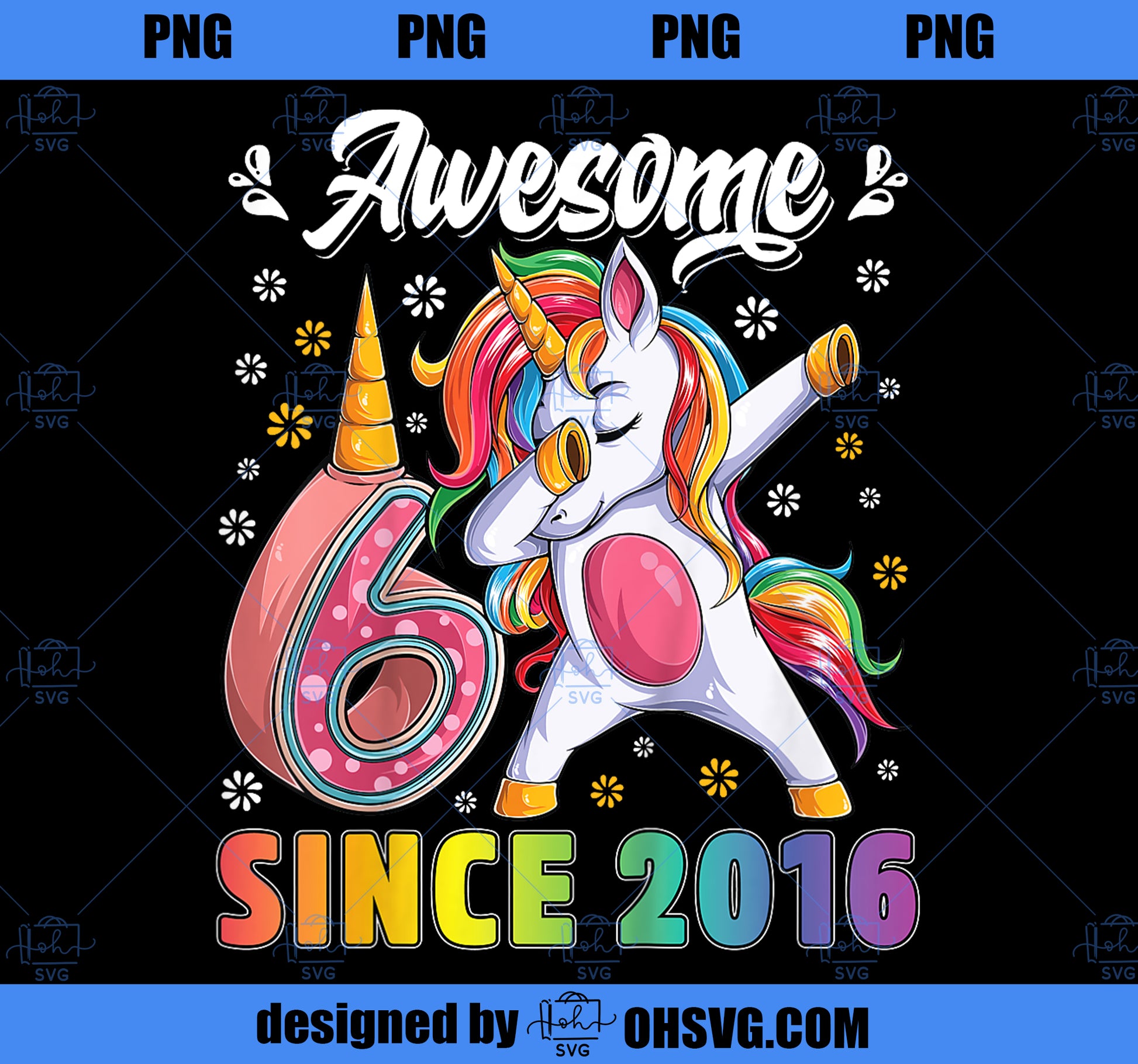 Kids awesome dabbing unicorn birthday 6 year old Girl 6th Bday PNG, Magic Unicorn PNG, Unicorn PNG