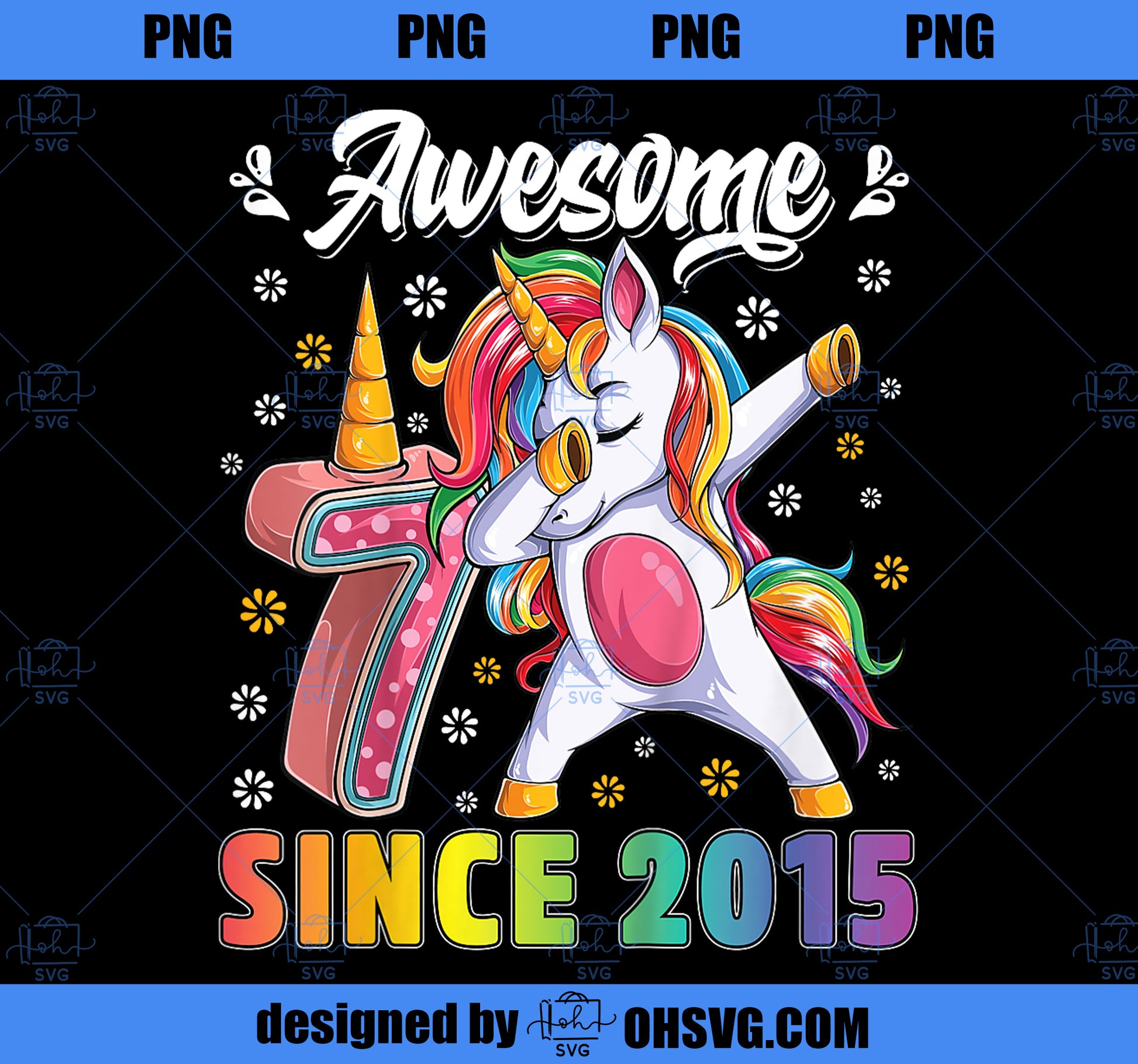Kids awesome dabbing unicorn birthday 7 year old Girl 7th Bday PNG, Magic Unicorn PNG, Unicorn PNG