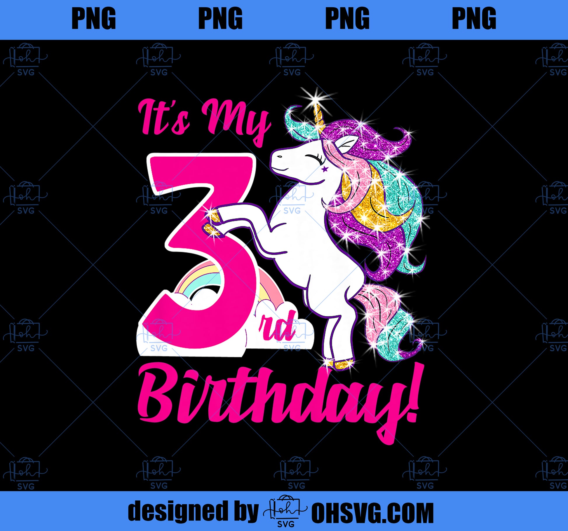 Kids Its my 3rd Birthday (3 year old) unicorn Birthday shirt gift Premium PNG, Magic Unicorn PNG, Unicorn PNG