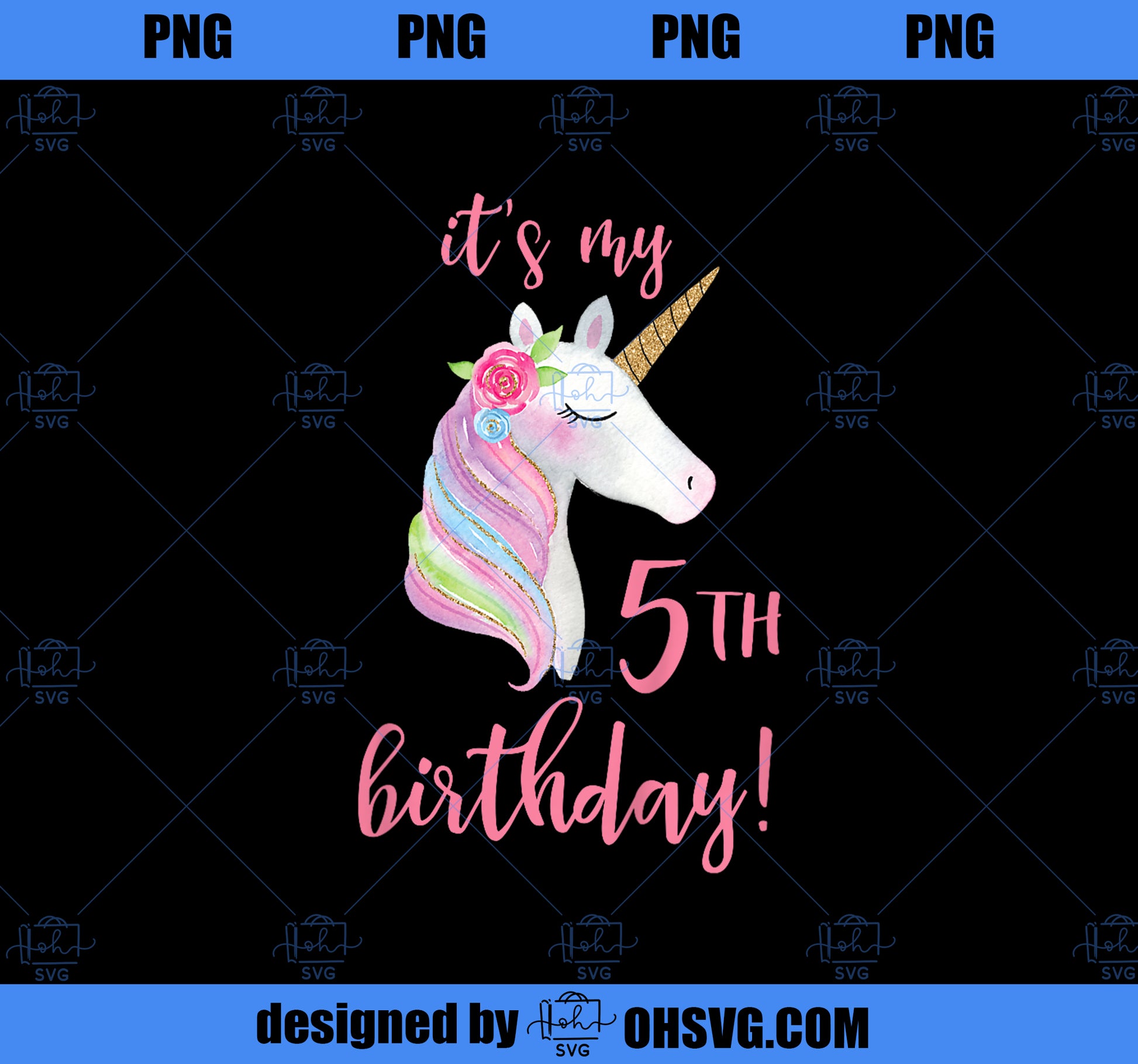 Kids Its My 5th Birthday Unicorn Outfit, 5th Birthday Girl Shirt PNG, Magic Unicorn PNG, Unicorn PNG