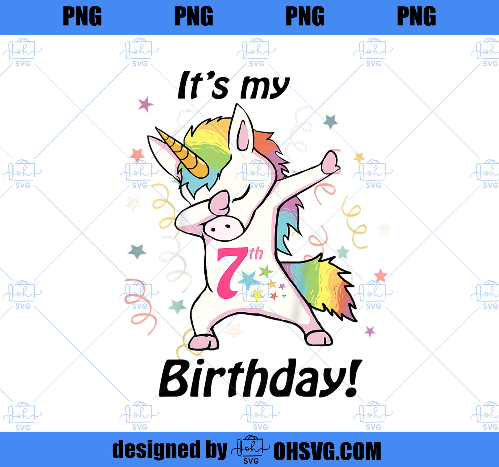 Kids Its my 7th Birthday Unicorn Dabbing Shirt (7 Year Old Gift) PNG, Magic Unicorn PNG, Unicorn PNG