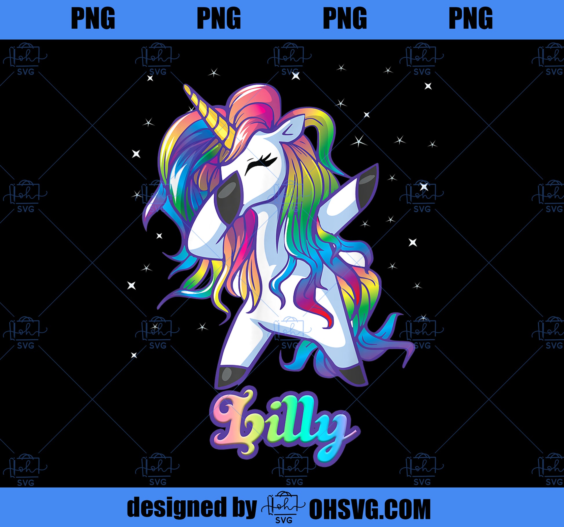 LILLY Name Personalized Custom Rainbow Unicorn Dabbing PNG, Magic Unicorn PNG, Unicorn PNG