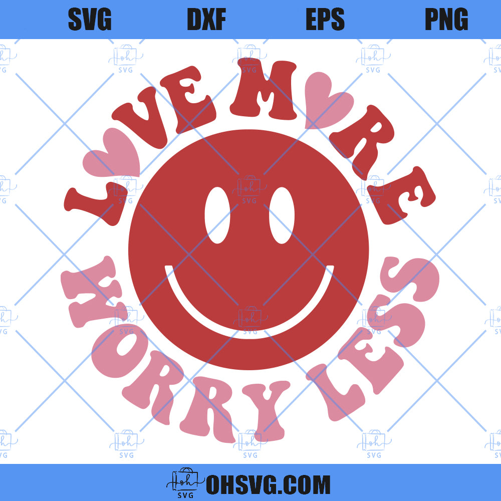 Love More Worry Less SVG, Valentine Smile Face SVG, Valentine Hearts SVG