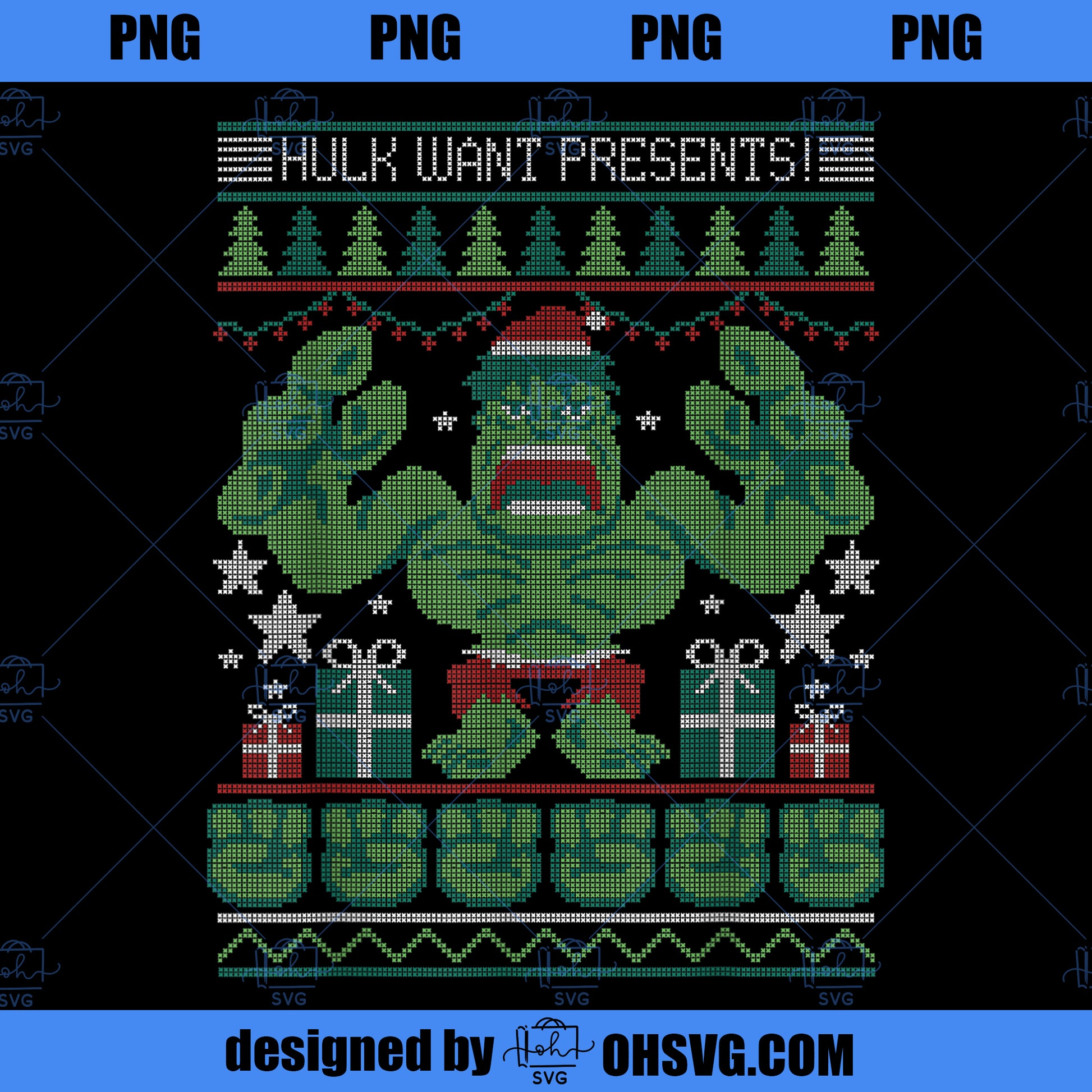 Marvel Hulk Wants Presents Holiday Sweater PNG, Marvel PNG, Marvel Hulk PNG