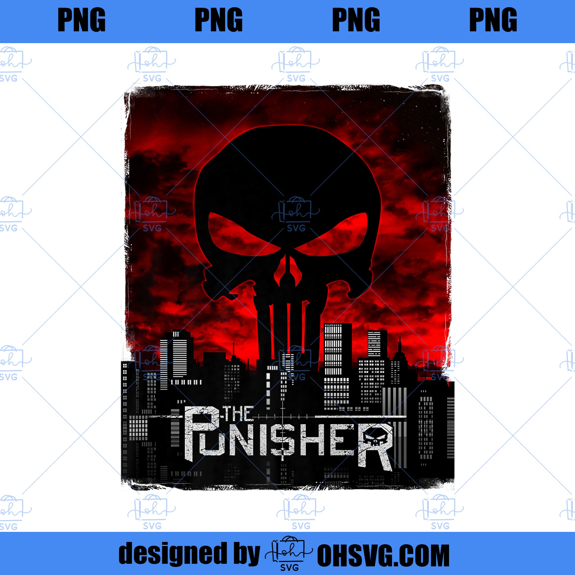 Marvel The Punisher Skyline Cityscape Skull Premium PNG, Marvel PNG, The Punisher PNG