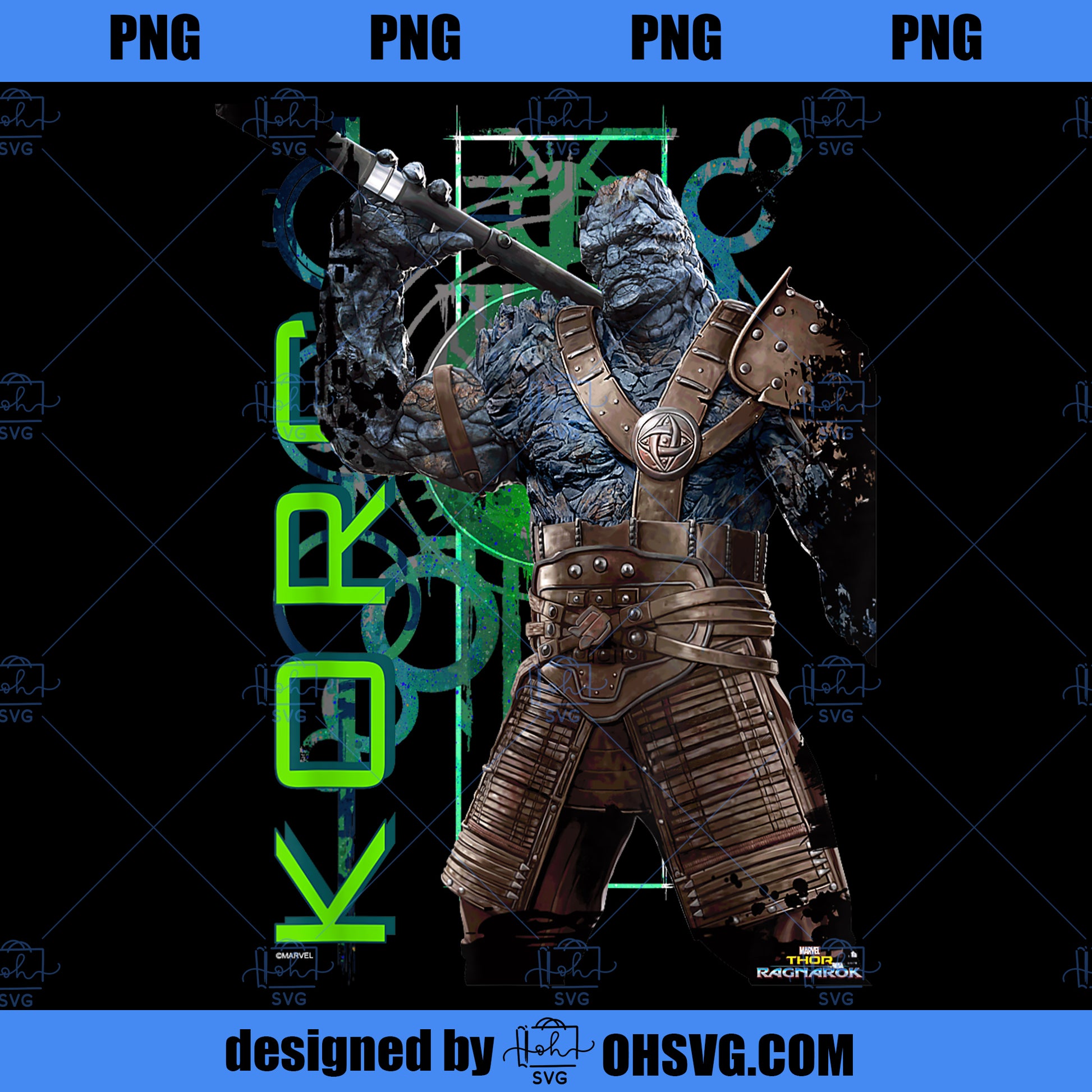 Marvel Thor Ragnarok Korg Green Symbols Graphic PNG, Marvel PNG, Marvel Thor PNG