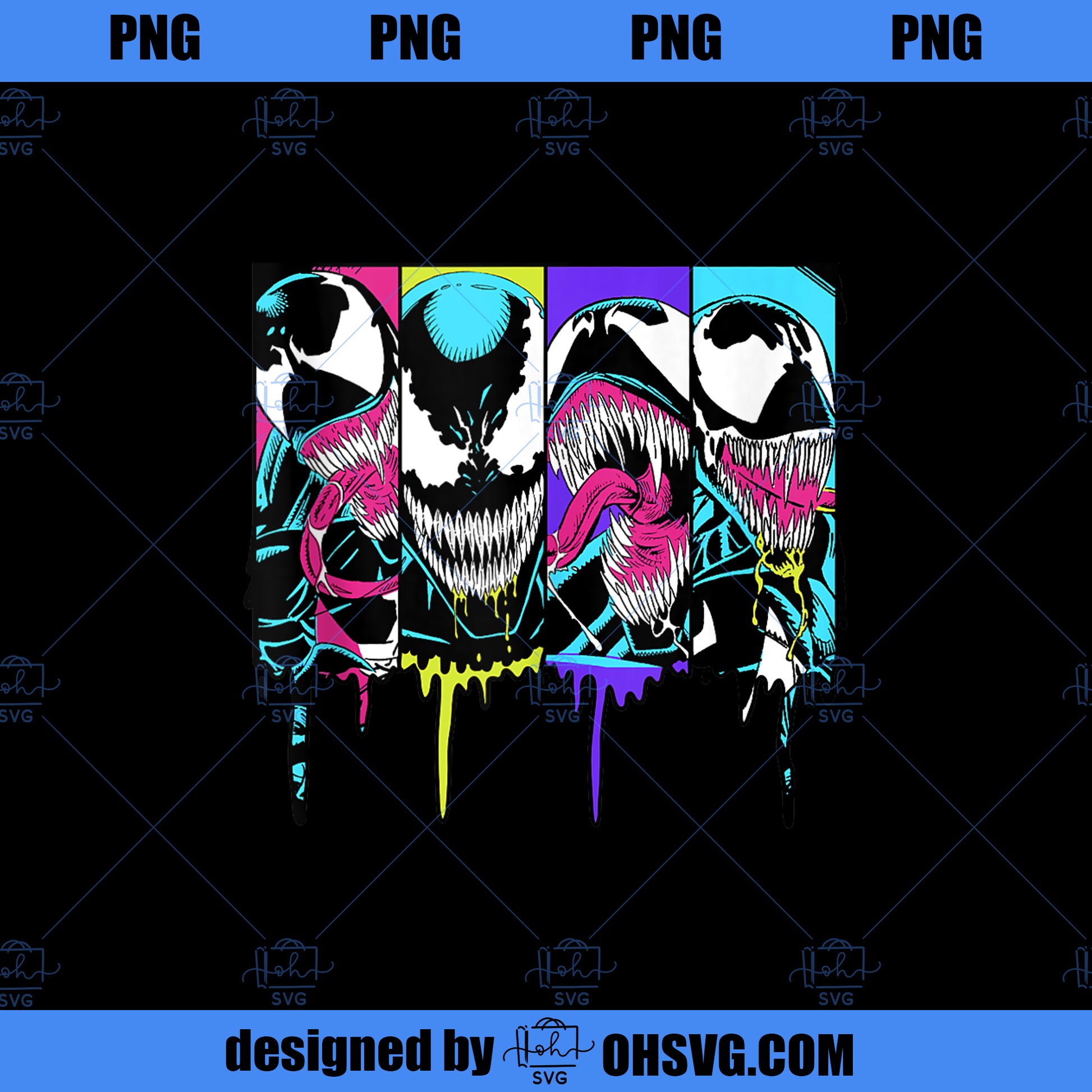 Marvel Venom Colorful Paint Drip Portrait Panels PNG, Marvel PNG, Marvel Venom PNG