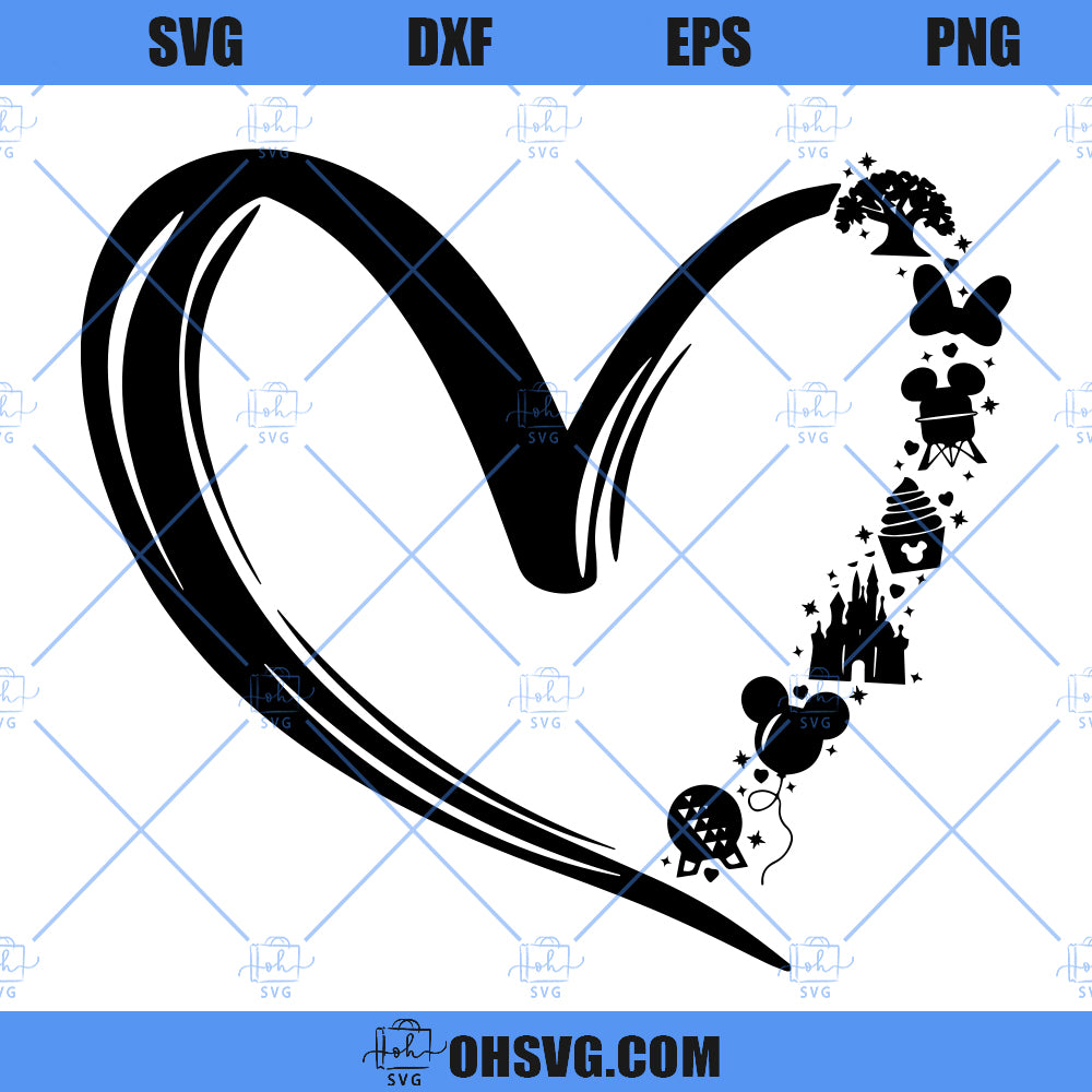 Minimalist Parks Heart SVG, Disney Heart SVG PNG DXF Cut Files For Cricut