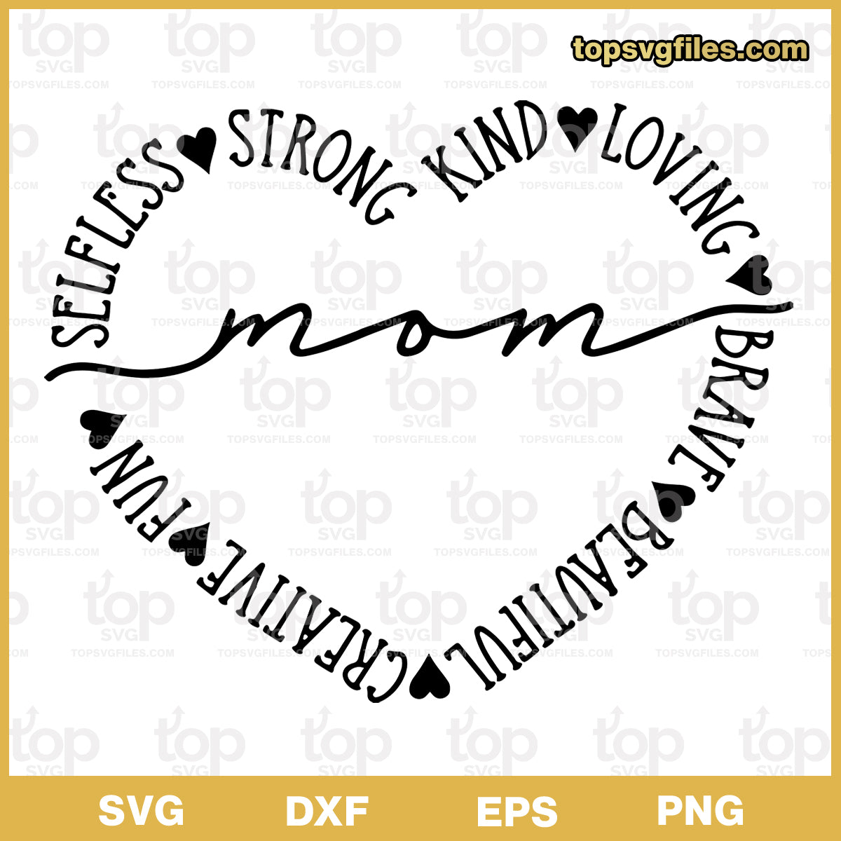 Mom Strong Kind Loving Brave Beautiful Creative Fun Selfless SVG, Mother's Day SVG Download Digital Sublimation