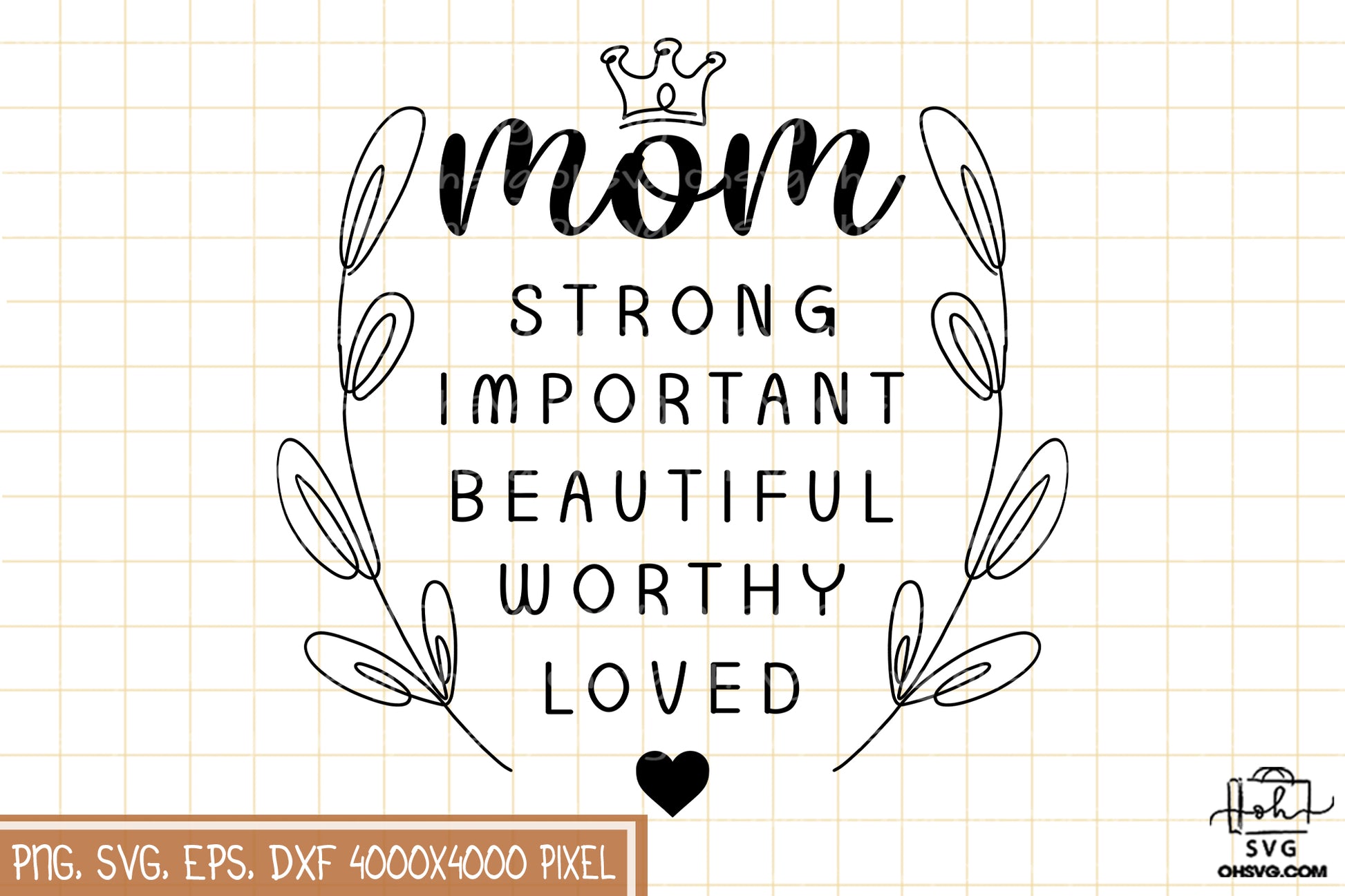 Mom Strong Worthy Loved Sublimation SVG, Mom SVG, Mothers Day SVG