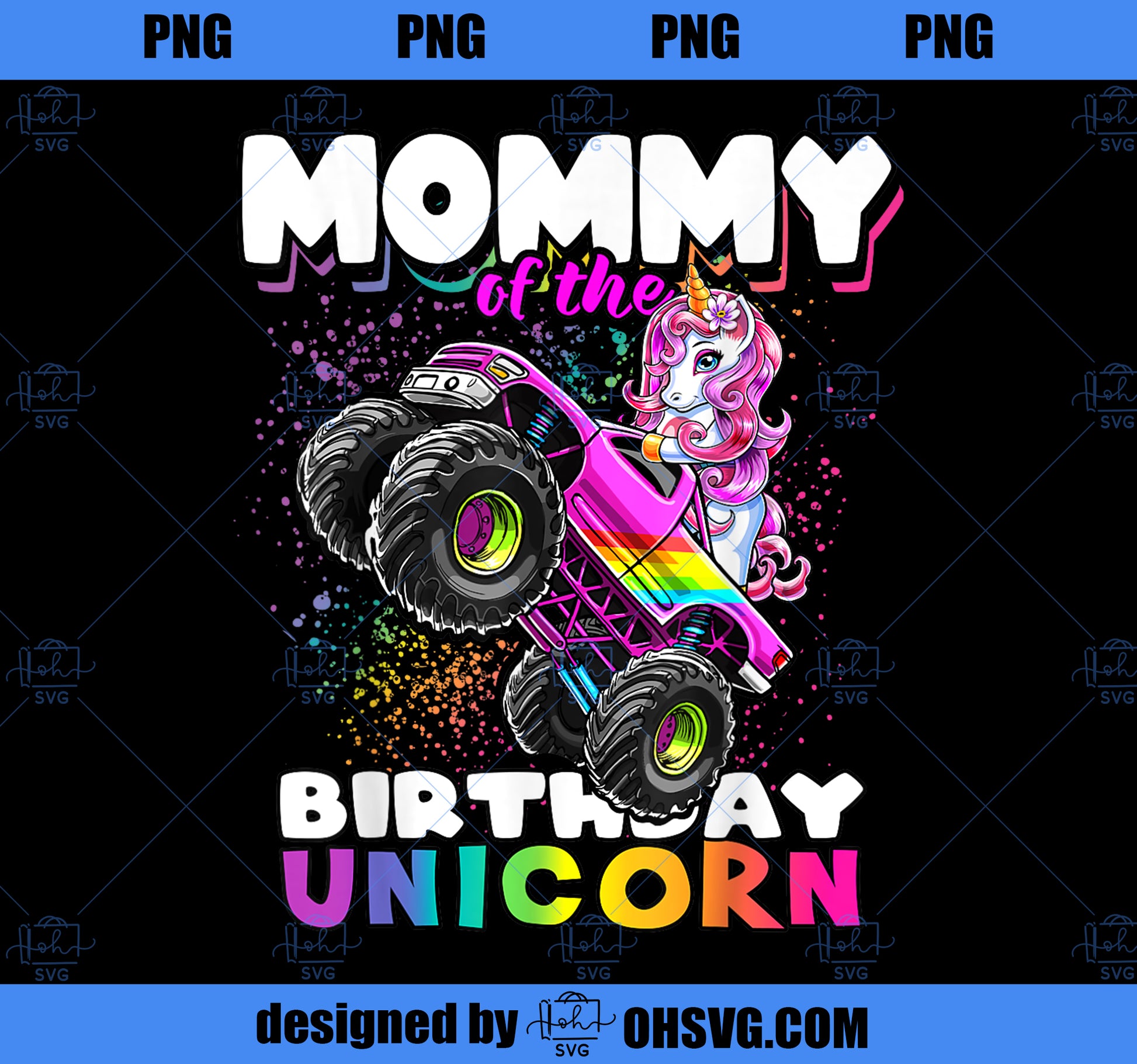 Mommy of the Birthday Unicorn Monster Truck Matching Family PNG, Magic Unicorn PNG, Unicorn PNG