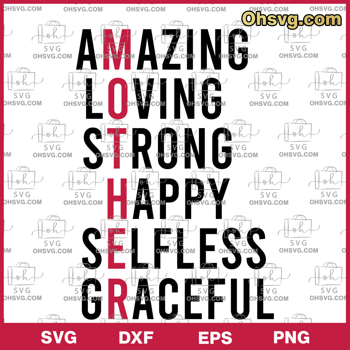 Mother Amazing Loving Strong Happy Selfless Graceful SVG, Cricut Download Digital,Mother's Day SVG