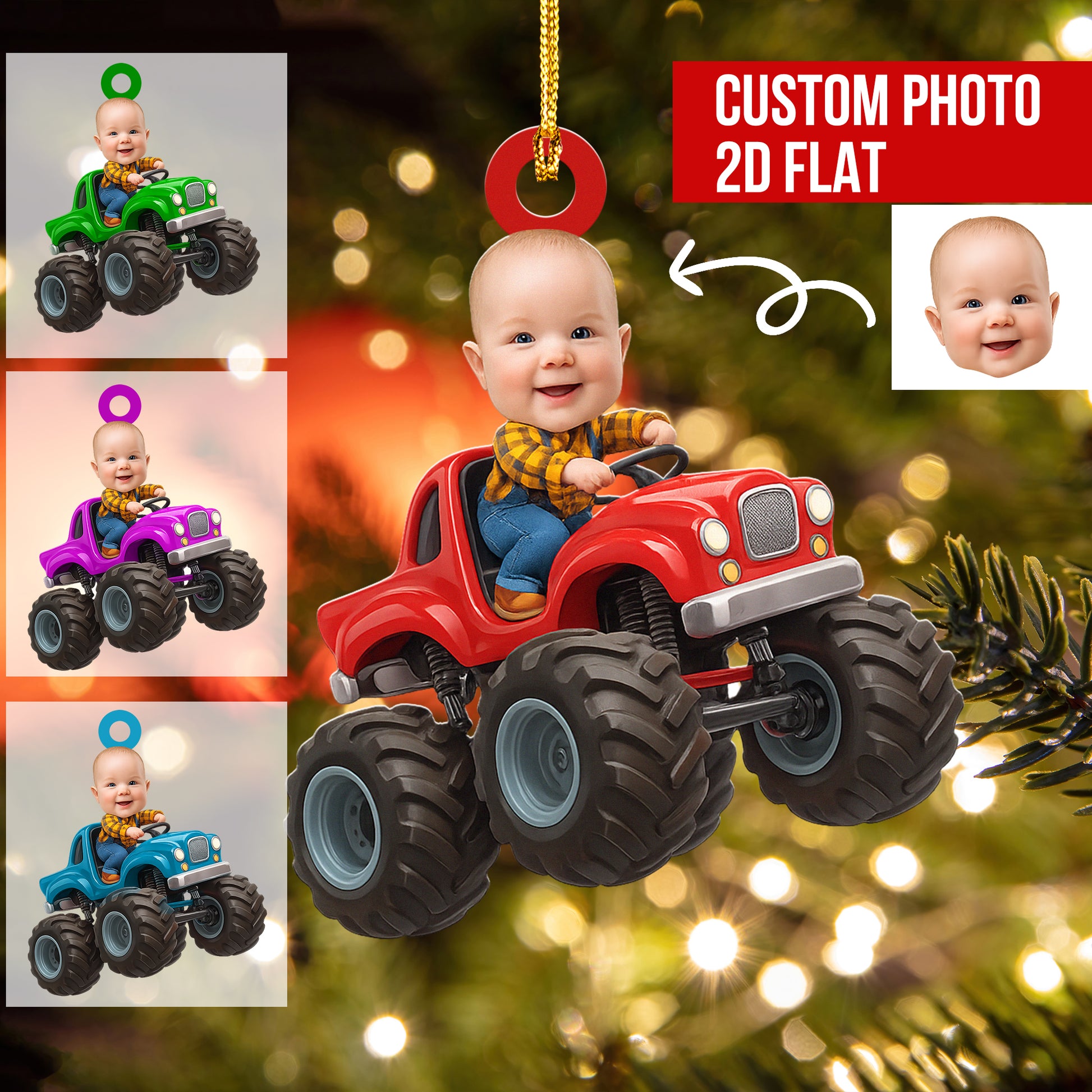 Custom Face Kid Riding Monster Truck - Gifts For Toddler, Kids - Personalized Acrylic Photo Ornament